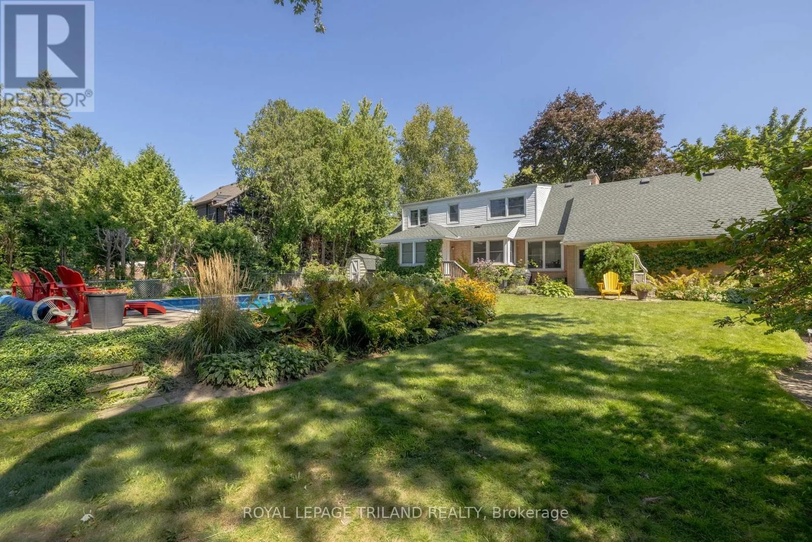 Welcome to 1631 Kathryn Drive, a beautifully maintained 2-storey home nestled in the heart of Masonville. Set on an expansive 75′ x 160′ lot, this 1962-built gem boasts meticulous landscaping and an oversized heated inground pool – perfect for summer entertaining. Inside, charm meets function with original hardwood flooring throughout most of the main level. The bright and airy layout
