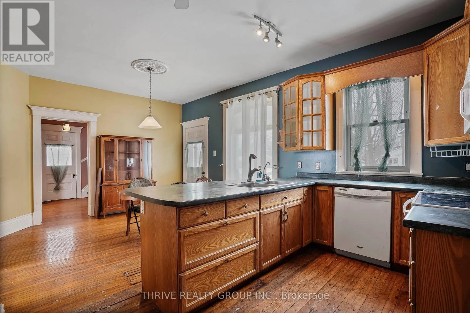 Charming 100+ year-old yellow brick home with white picket fence, full of character and untapped potential. This 3-bedroom property is ideal for someone with vision looking to restore and enhance its original charm. The large kitchen offers an eat-in area perfect for family meals and gatherings, while the detached garage provides excellent space for a hobbyist or additional storage. Set