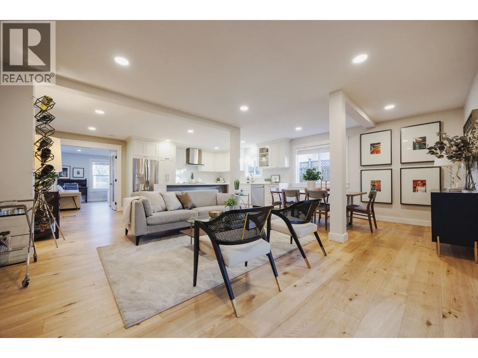 FAMILY FRIENDLY! This tastefully renovated home offers all the modern conveniences while enjoying the larger lot and mature landscaping of days gone by. Stunning kitchen featuring gleaming stone countertops, chevron tile backsplash, engineered wood floors, a massive island, an abundance of shaker cabinets and stainless appliance package including gas range. The large living room offers cozy comfort with a real