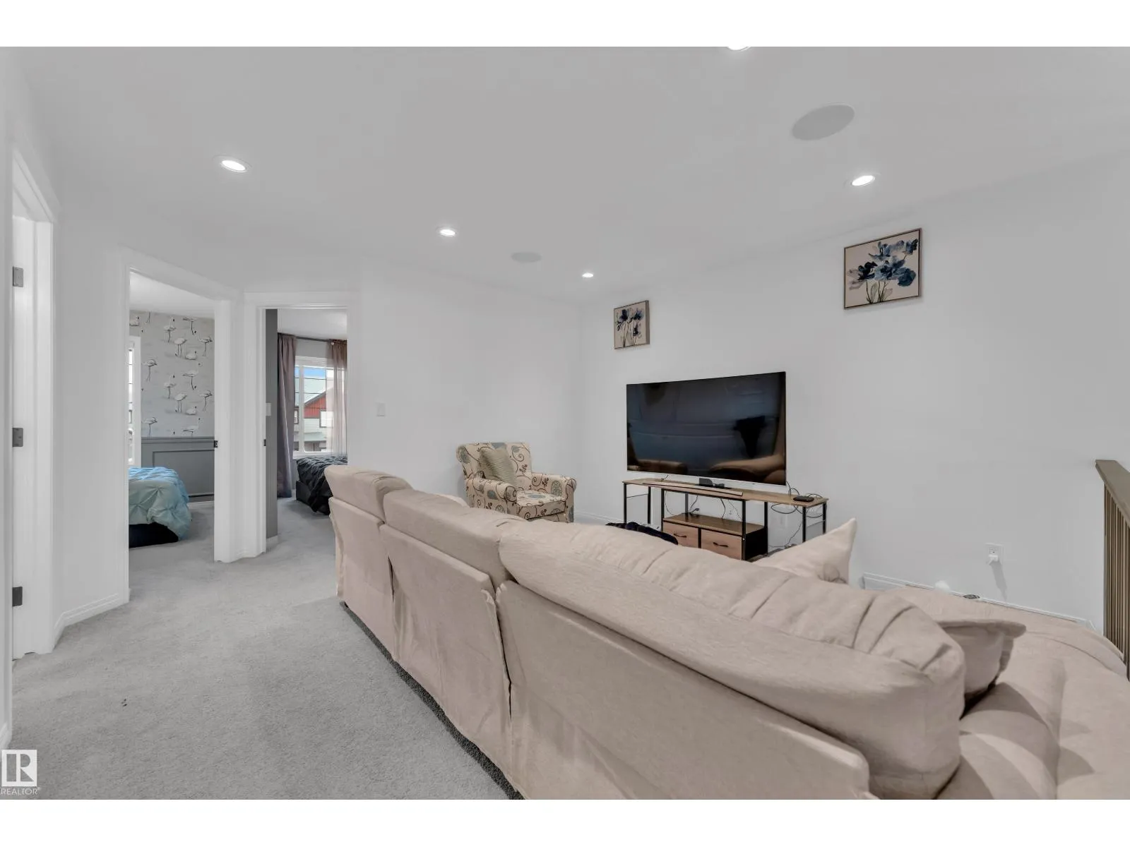 This well-appointed 2,000 sq ft former show home offers a functional layout with quality upgrades throughout. The main level features a bedroom and full bathroom, ideal for guests or multigenerational living, along with a mudroom and access to the double attached garage. The living room showcases an open-to-above ceiling, providing abundant natural light and a spacious feel. The kitchen