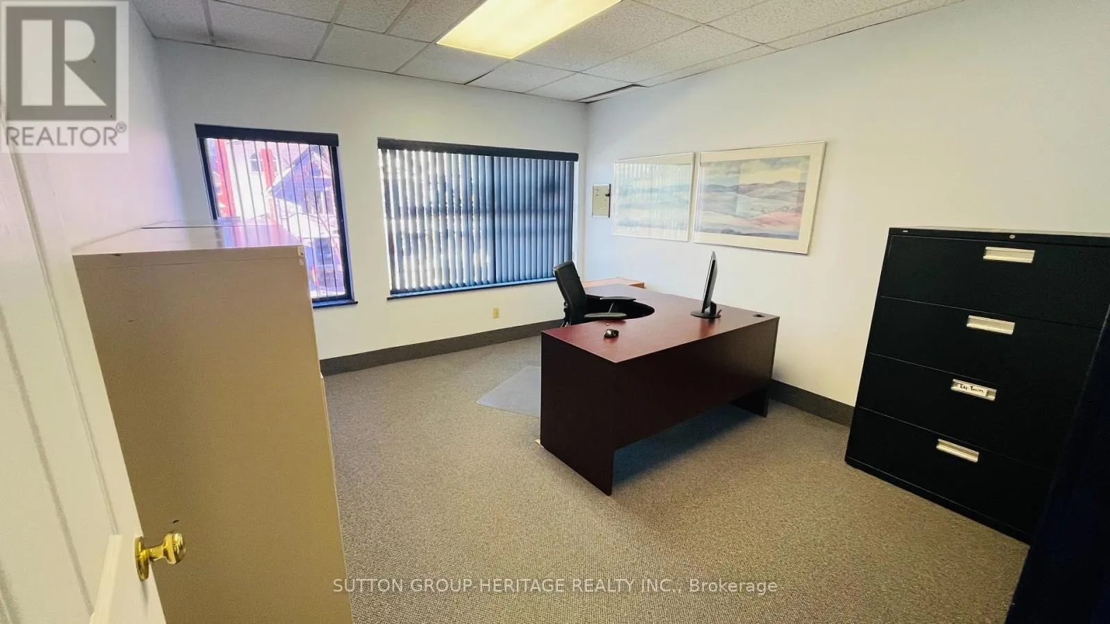 FULLY FURNISHED … IN Downtown Whitby on Brock St. Rarely found, unit of 920 SF RENTABLE space in the second floor, furnished with 5 desks, filing cabinets and storage units, reception area and a large office space, in addition to 2 main private offices directly on Brock St. with large windows, the second floor is accessible from Brock St. main