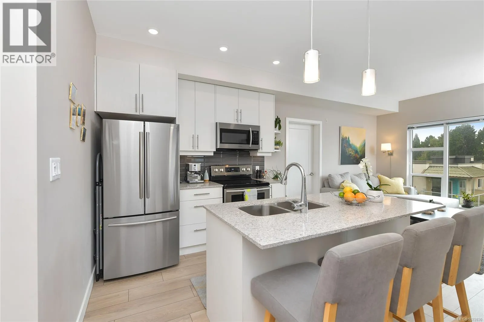 From morning coffee to evening wine, your SW-facing wraparound balcony becomes a front-row seat to cotton candy sunsets and twinkling city lights. Unit 406 is a sought-after corner unit at The Shire, a newer, impeccably maintained building in a vibrant, walkable neighbourhood. Inside, oversized windows flood the space with natural light, highlighting a smart 2-bed, 2-bath layout with separated bedrooms