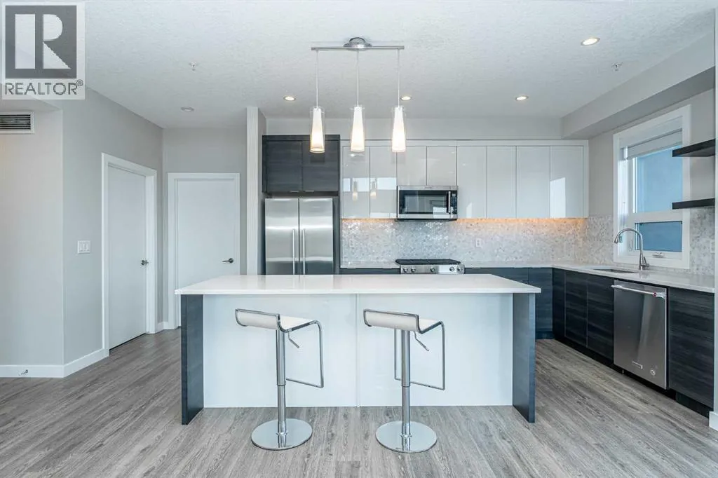 Discover this exceptional penthouse nestled in the heart of Currie Barracks, offering unparalleled elegance and comfort. Located on the top floor of a stunning four storey building, this residence features soaring ceilings and an expansive open concept living and dining area perfect for both relaxing and entertaining. Step outside onto the massive terrace, where breathtaking views and seamless indoor outdoor