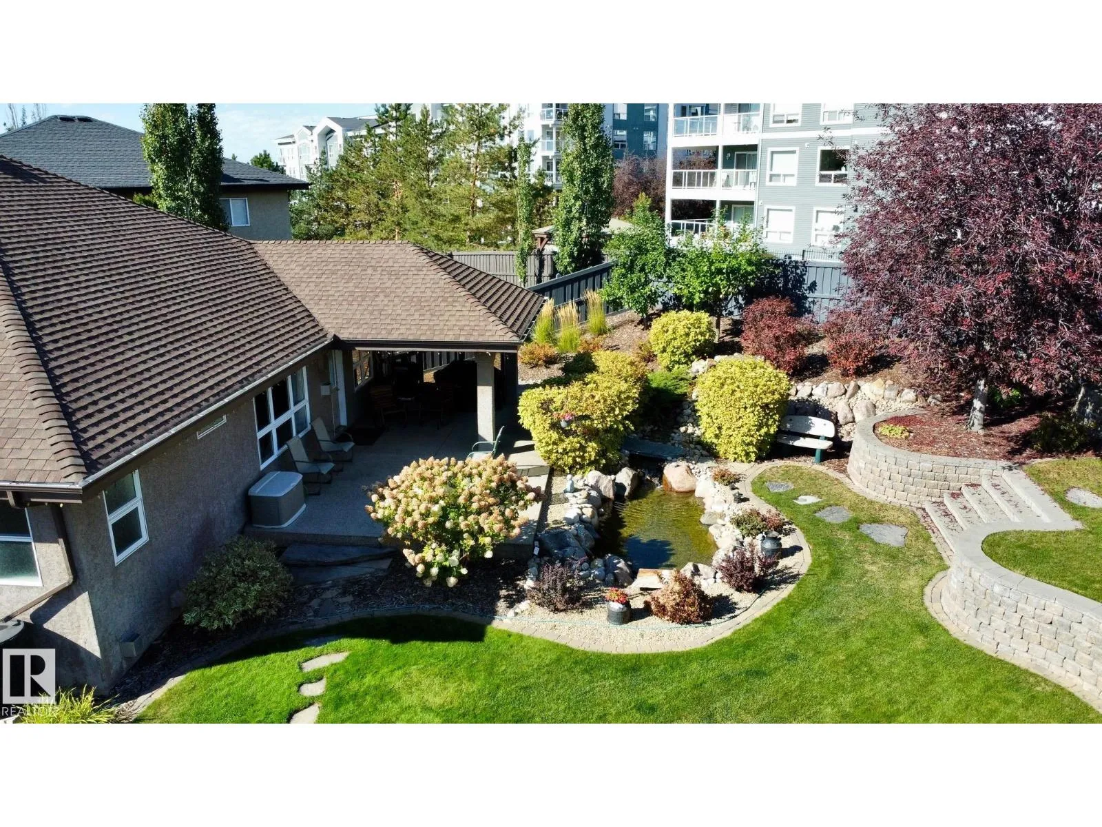 The main floor features include hardwood and tile flooring, vaulted ceilings, security system, in-floor heating and a pantry storage. The basement is fully finished with family room, fireplace and wet bar, bedroom, bathroom with a 5′ shower surround and a furnace/storage room.There is a double attached garage with a floor drain and in-floor heating. Property consists of wood chip beds,