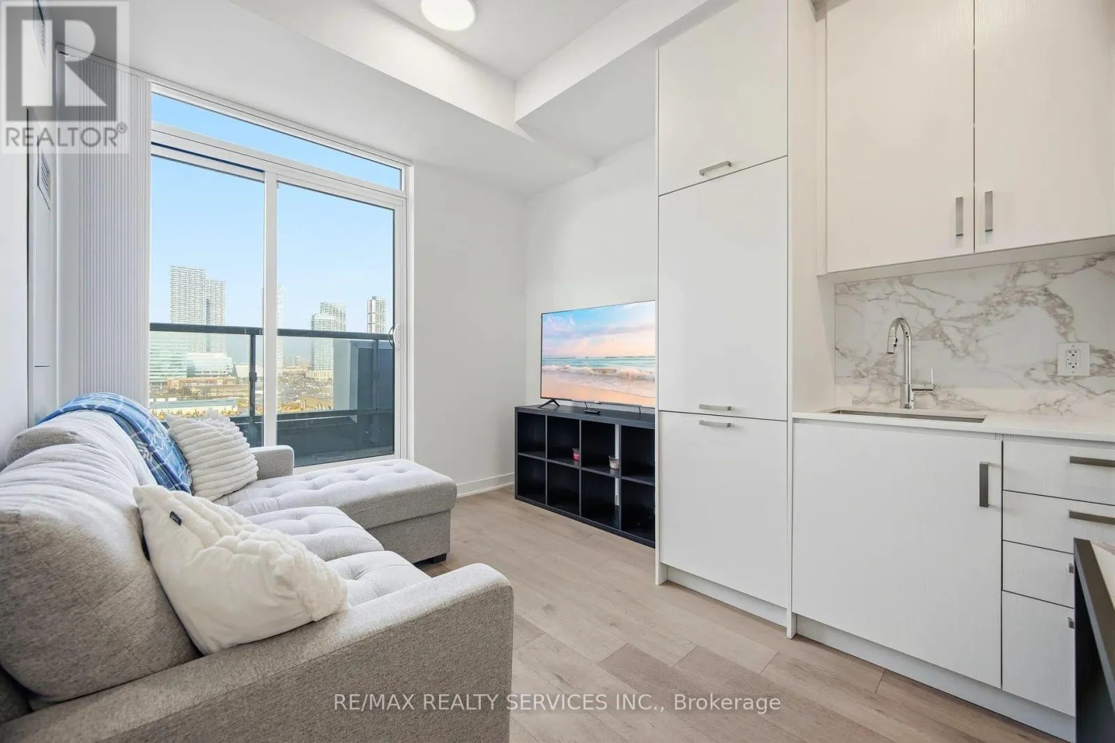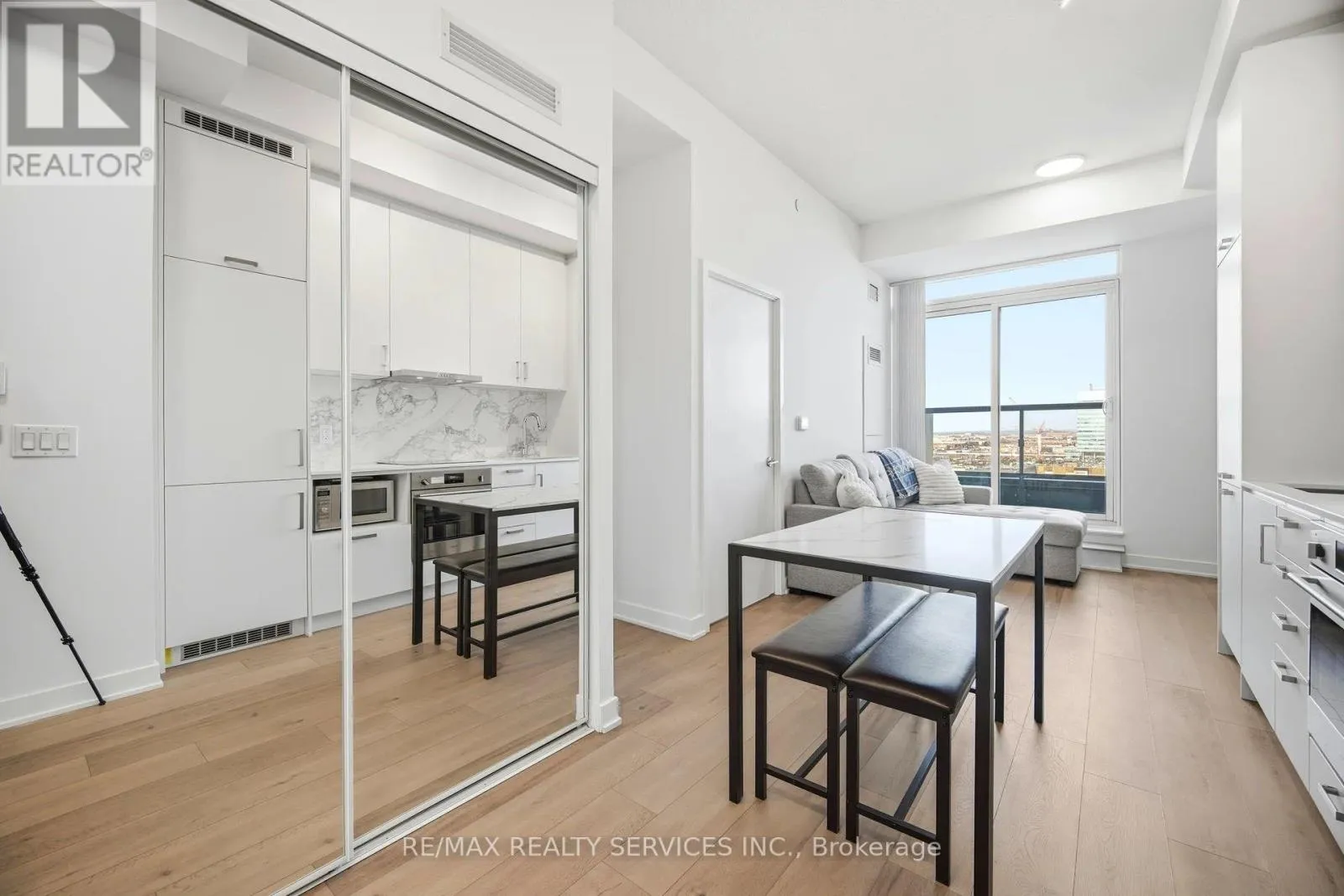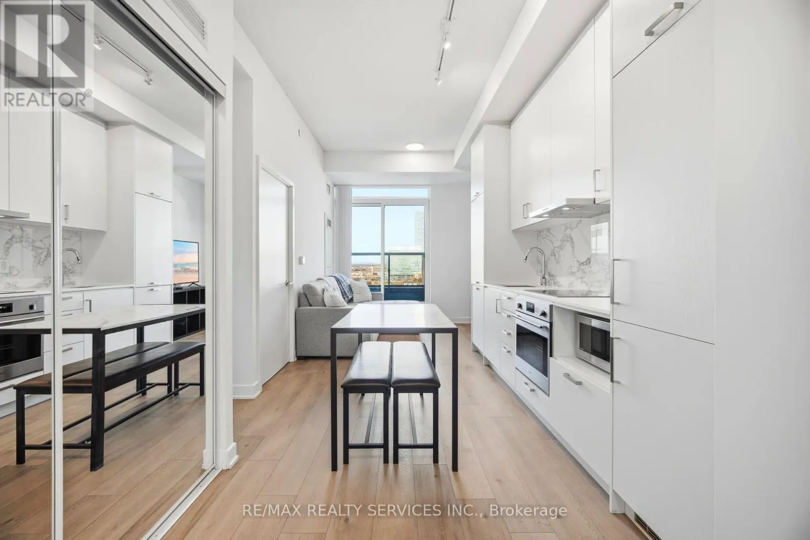 Welcome To Mobilio South Condos, A Bright Corner Unit Located In The Heart Of The Vaughan Metropolitan Centre. This Beautifully Designed 1 Bedroom Plus Large Den Features 9-Foot Ceilings And A Functional, Sought-After Layout With A Rare Wrap-Around Balcony Providing Expanded Outdoor Space And Multiple Access Points. The Spacious Den Includes A Walkout To The Balcony, Making It Ideal For