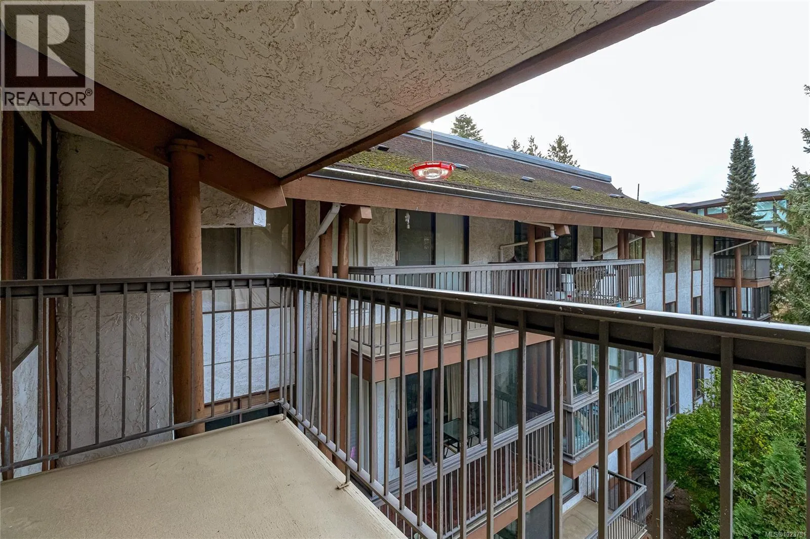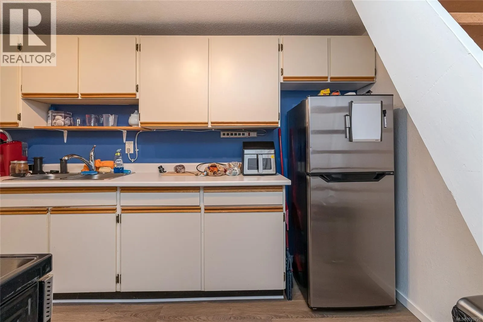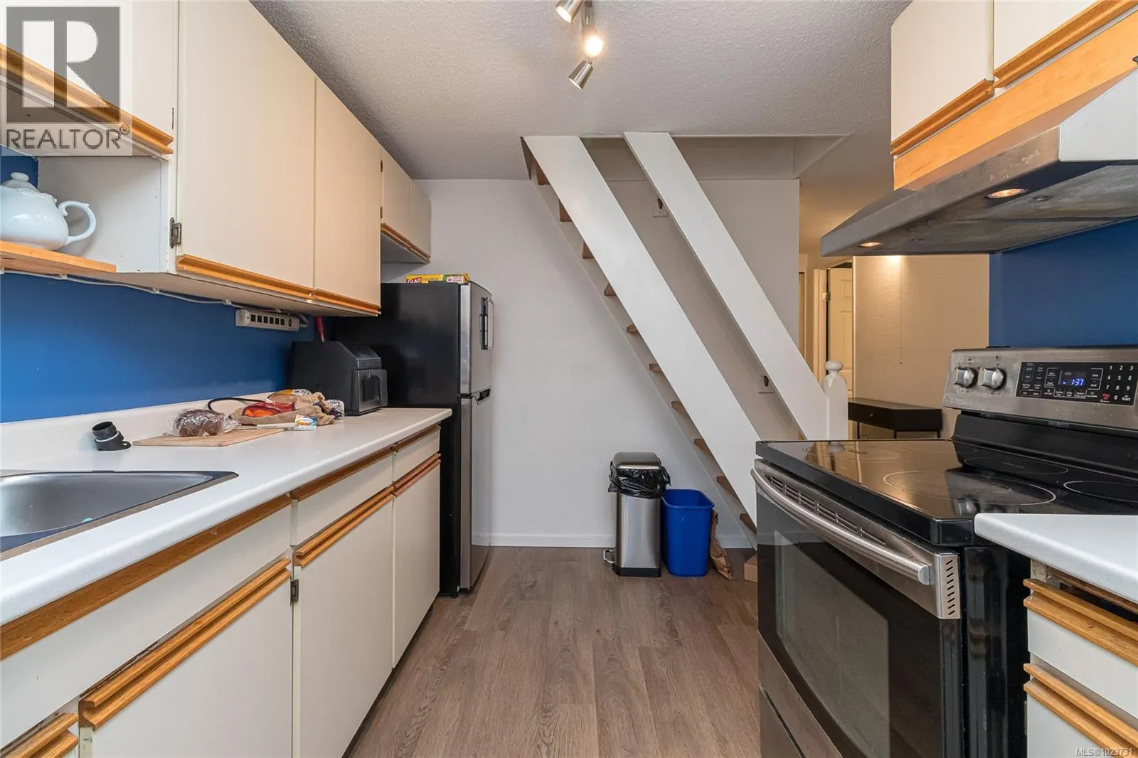 Spacious top floor loft style two bedroom condo at Royal Woods in Saanich! 916sqft main level with 14 foot vaulted ceilings in living room, sunny 10×5 west facing balcony and 14×11 primary bedroom with large walk-in closet. Additional 332sqft loft level with two skylights and plenty space for second bedroom, home office/studio and storage. Updates include new vinyl flooring and