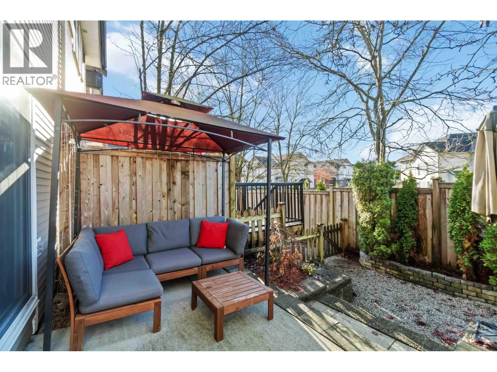 Mountain View Estates. This beautifully kept 2-bedroom, 3-bathroom townhouse is situated in a fantastic location in the complex with a lush green space at the back for exceptional privacy. The landscaped garden patio is a true delight & is perfect for relaxing & entertaining. The main floor showcases laminate flooring throughout, a spacious kitchen offering a breakfast bar, tiled backsplash,