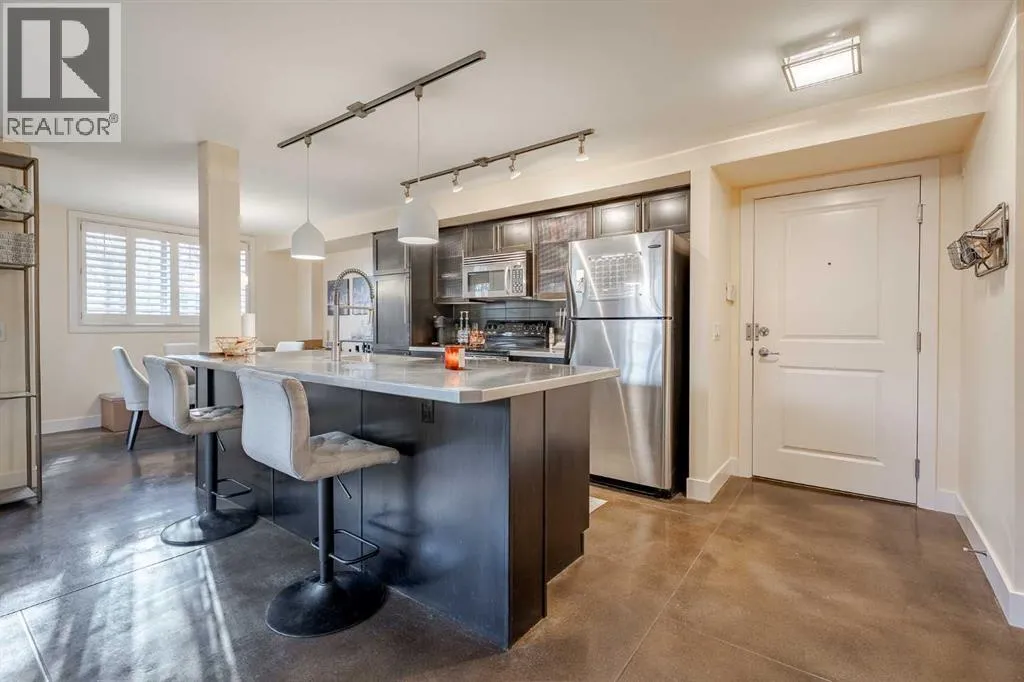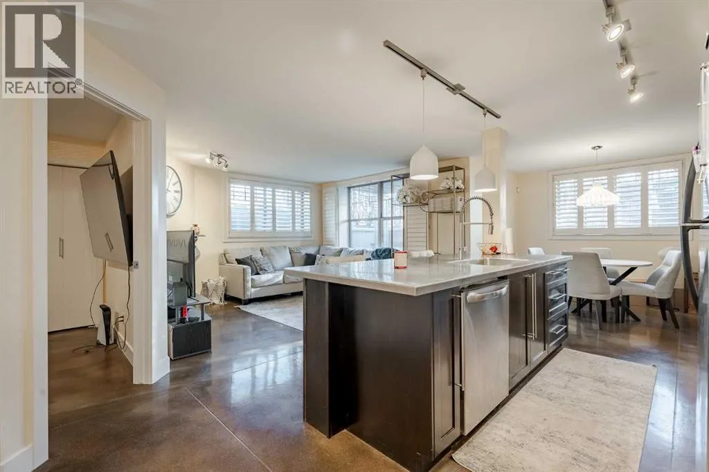Welcome to this stylish and well maintained 2 bedroom, 2 bathroom condo in the heart of Altadore. This spacious home features a modern open-concept design with polished concrete floors and in-floor heating, offering both style and comfort. The bright, open living area is flooded with natural light from large windows and is anchored by a cozy gas fireplace, creating the