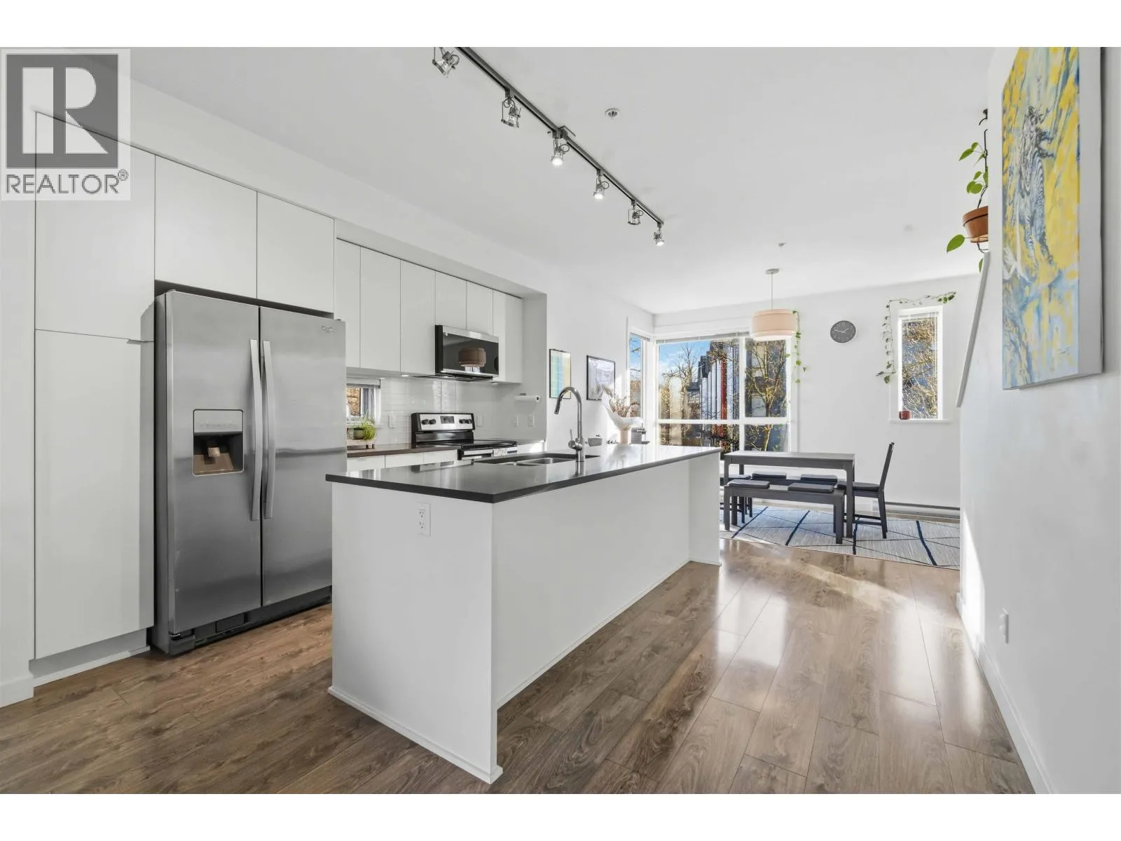 Welcome to this bright and spacious CORNER END UNIT townhome in the highly desirable FREMONT community by Mosaic. This well designed home offers an open-concept main floor with 9 foot ceilings and a modern kitchen complete with quartz counters, generous cabinet space, and plenty of prep space – perfect for everyday living and entertaining. Upstairs features two well-sized bedrooms, while
