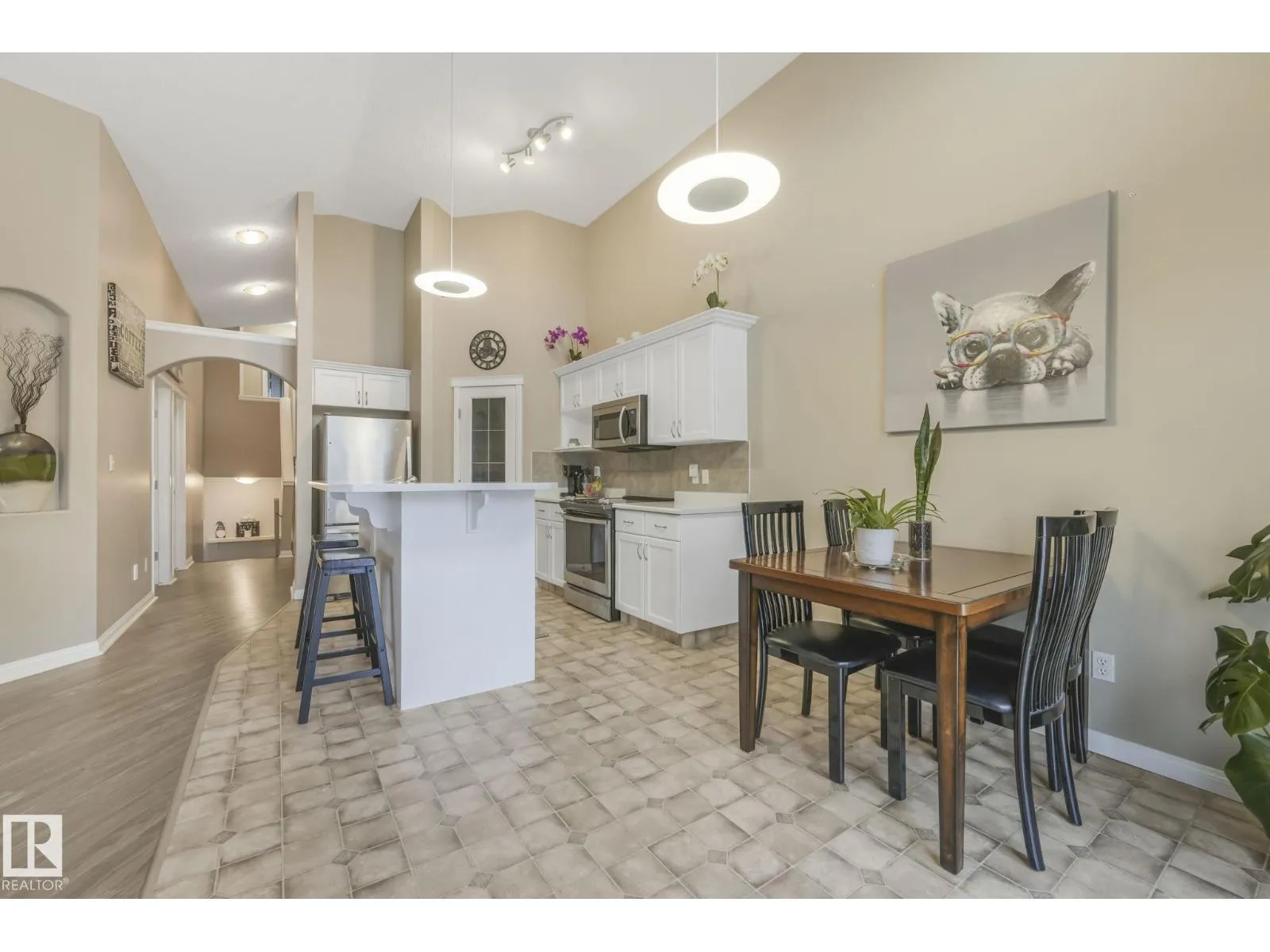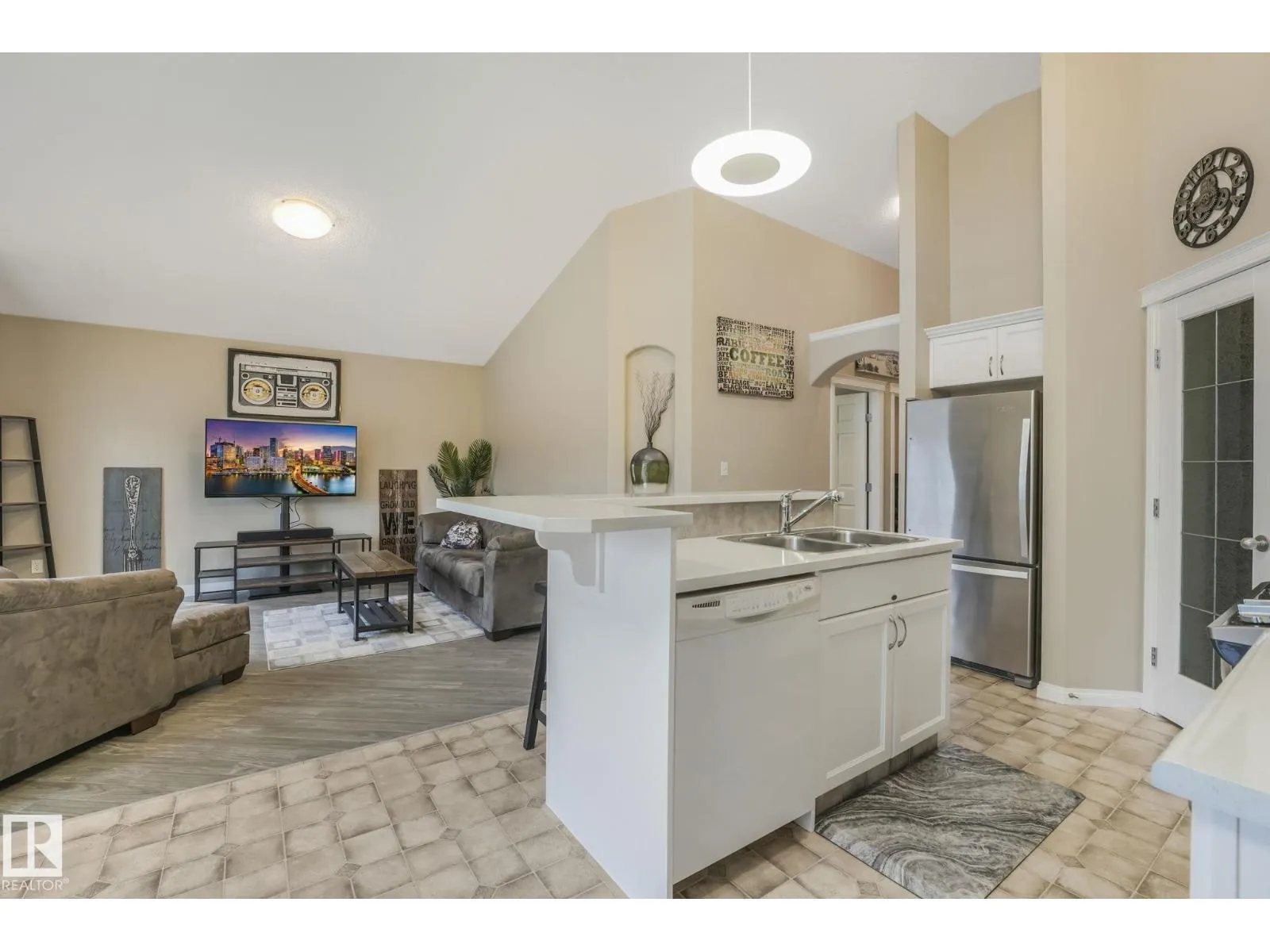 Discover this radiant & spacious bi-level half duplex, boasts an open-concept layout with vaulted ceiling that creates an inviting atmosphere. The main level is flooded with natural light from ample windows, & features a living room, a modern kitchen with a two-tier breakfast island, walk-in pantry, and stylish lighting, Two bedrooms and a 3-pc bathroom are thoughtfully located on this