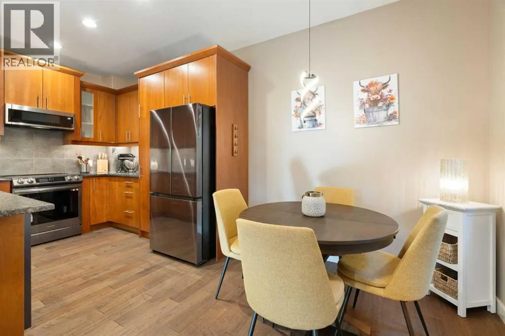 a cozy inset fireplace. The open-concept layout flows effortlessly into the dining area and well-appointed kitchen—spotless, functional, and ideal for both everyday living and entertaining. New kitchen appliances were installed in 2024, including energy-efficient, smart Samsung appliances (fridge, dishwasher, and stove). The stove features an induction cooktop and a convection oven with a steam-cleaning function, while a Whirlpool microwave completes the newer appliance package. A convenient powder room adds to the functionality of the main level. Upstairs, the home offers two spacious bedrooms, each with its own 4-piece ensuite, all maintained in immaculate condition. The primary bedroom is a comfortable retreat, featuring a cozy electric fireplace and a well-appointed ensuite with a skylight, spacious vanity, large soaker tub, and separate shower. A convenient upper-level stacked washer and dryer adds everyday practicality. The recently completed basement extends the living space and includes a rec room with wet bar and refrigerator, ideal for relaxing or entertaining. A barn door provides stylish access to the utility and storage room. Additional features and upgrades include custom blinds installed in 2023, with thermal blinds in the primary bedroom and motorized blinds in the living room, central air conditioning (2023), R60 blown-in attic insulation (2024), and a smart thermostat—all contributing to the home’s comfort, efficiency, and excellent condition. A separate side entrance off the kitchen makes bringing in groceries easy and provides convenient access to the detached garage with assigned parking. Additional street parking in front of the home is easy and convenient. Outside, the pride of ownership continues with one of the most charming and well-kept yards on the street, featuring a covered front porch and an additional patio space, ideal for enjoying summer days. Ideally located with quick transit to downtown, easy access to Glenmore Trail, walking distance to Chinook Centre, and minutes from the trendy Britannia Plaza Shopping Centre, as well as parks, schools, and everyday amenities, this beautifully maintained home is perfect for professionals or families seeking comfort, quality, and an unbeatable location. (id:62650)