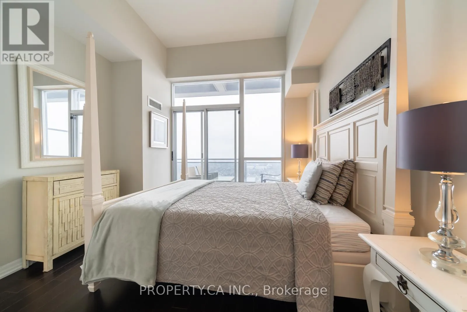 Executive Penthouse Living at The Onyx! Welcome to this sun-filled corner penthouse suite in the heart of Mississauga! Soaring 10′ ceilings, open-concept living space with natural light, showcasing unobstructed panoramic views of Lake Ontario and the Toronto skyline.This thoughtfully designed layout features two full-sized bedrooms, each with his & hers closets and full ensuite bathrooms, perfect for professionals, families, or