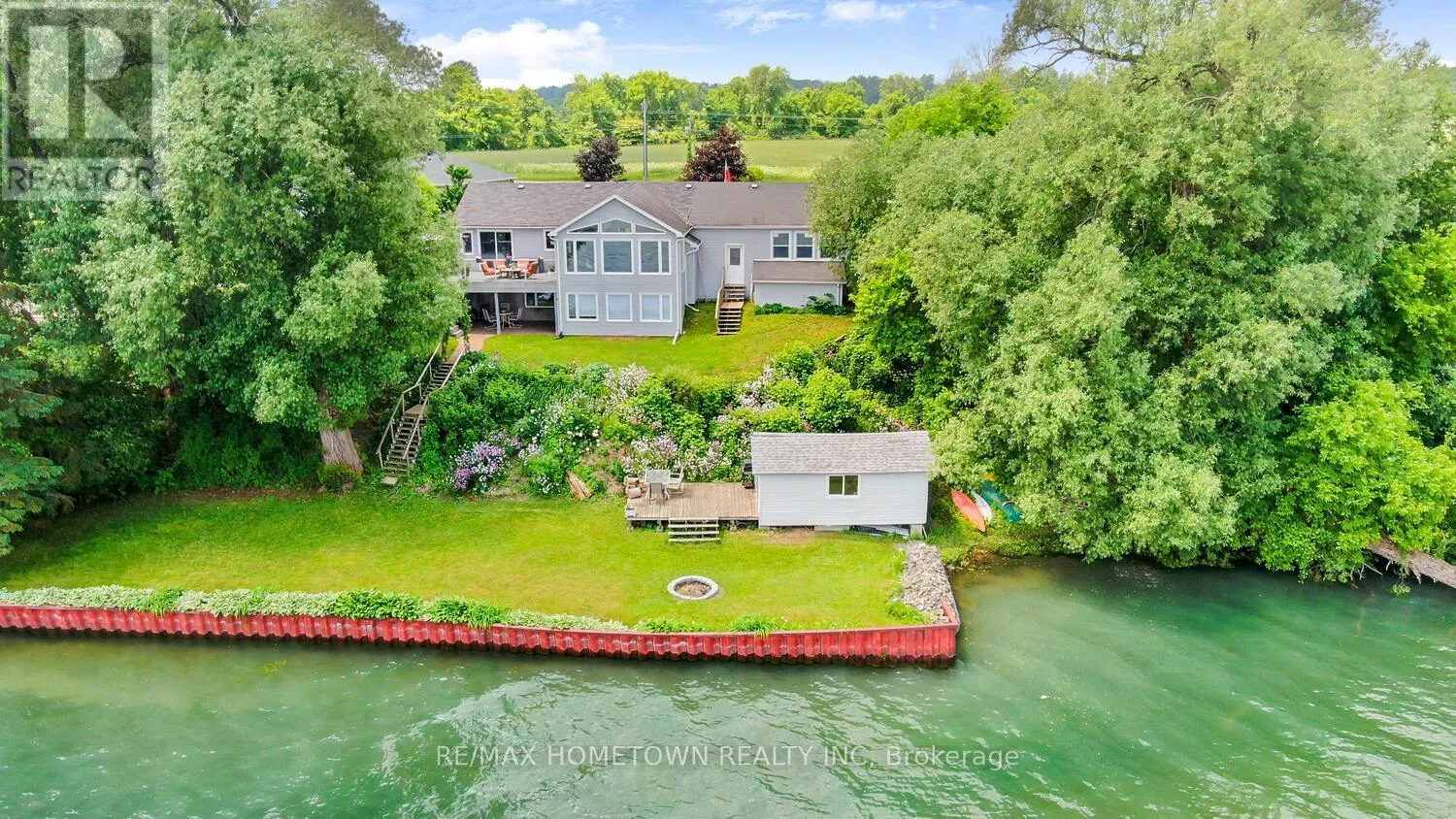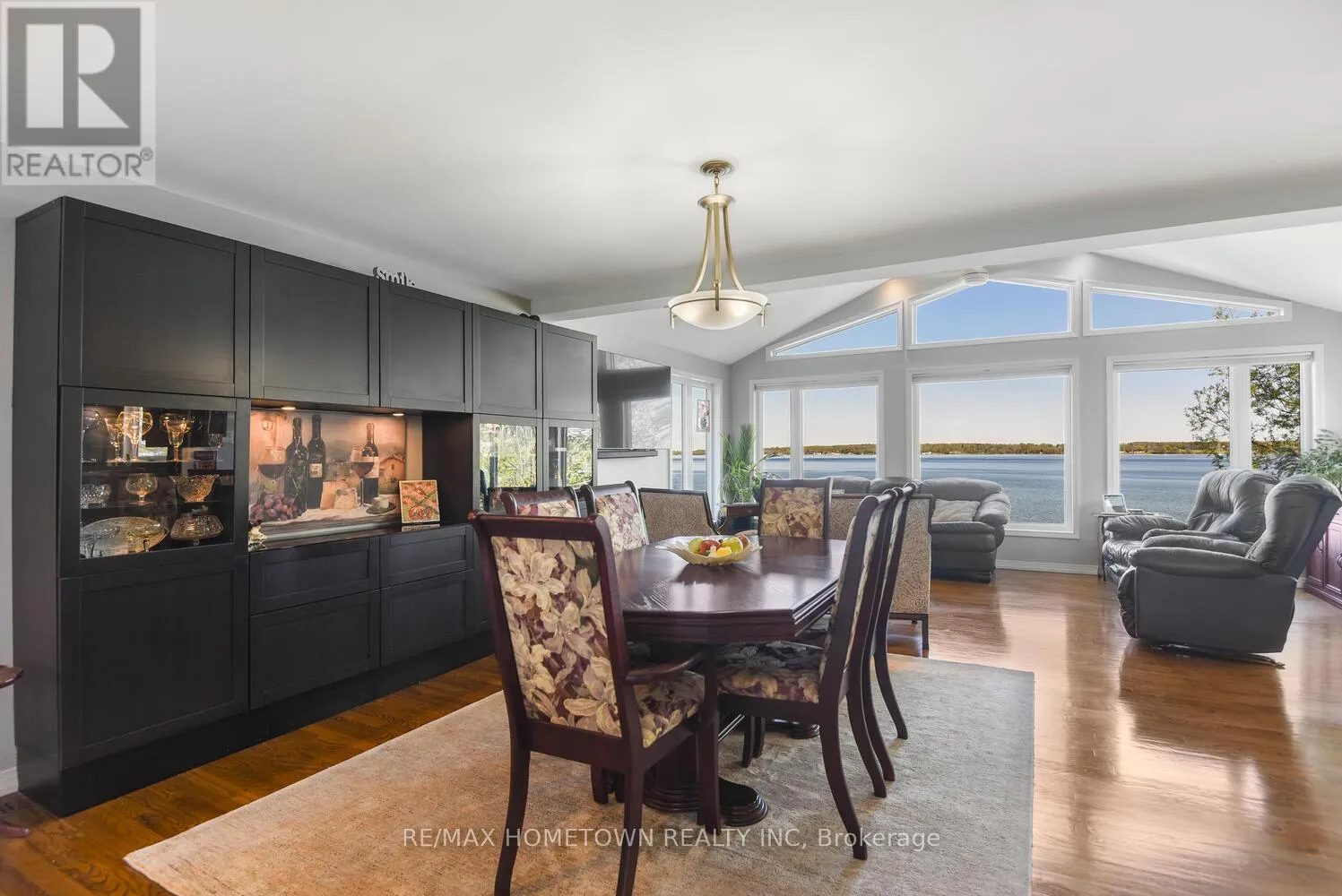 Welcome to 1435 County Road 2, a rare find on the beautiful St. Lawrence River! If you’re looking for peaceful waterfront living, step inside and be instantly greeted with a full view of the river through a wall of large windows. Open-concept living and dining areas. The built-in wall unit includes a buffet, china cabinets, lighting, and lots of storage.