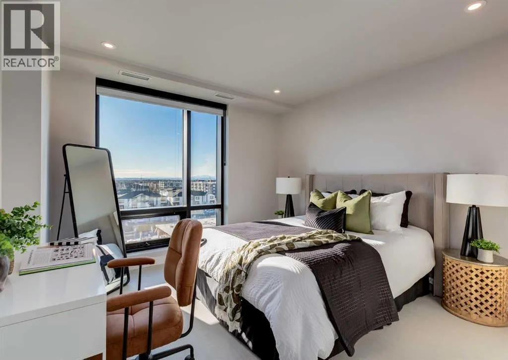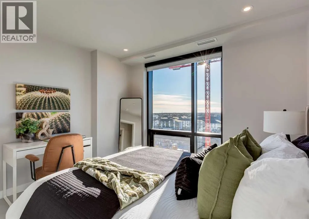 Welcome to this brand-new corner-unit condominium in the Plaza, located in the award-winning West District, where modern design meets an exceptional urban lifestyle. This bright and beautifully designed home features 9-foot ceilings and expansive windows that flood the space with natural light throughout the day. With the main living area and primary bedroom facing south, the home enjoys incredible sunshine,