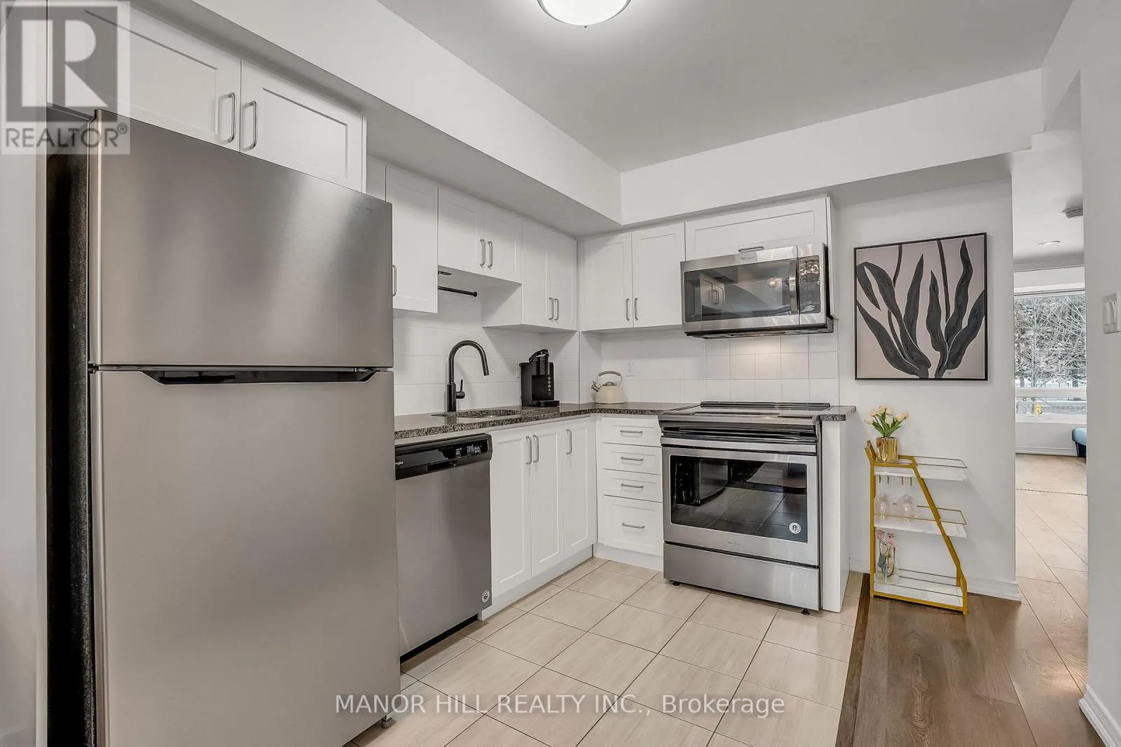 Welcome home to this bright and airy above grade 2 bedroom 1 bathroom stacked townhouse. Open concept living space with functional kitchen. Well appointed with white cabinets, granite counters and stainless steel appliances makes this a dream kitchen to cook in. Living room features an electric fireplace with functional wall storage to maximize space. Functional sized bedrooms with ample closet