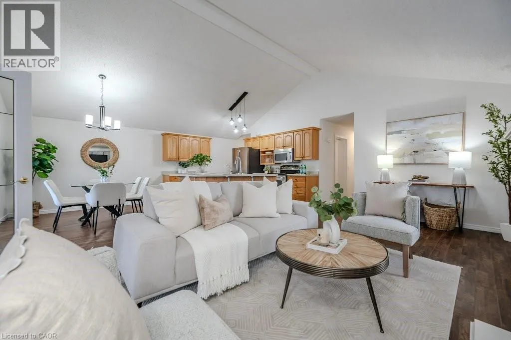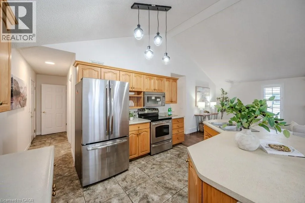 OPEN HOUSE SUNDAY MAR 2 – 2:00pm – 4:00pm! Charming DETACHED BUNGALOW with SOARING ceiling and TANDEM GARAGE in QUIET ADULT LIFESTYLE community of Martin Grove Village. Open concept layout with double vaulted ceiling and lots of natural light. Central kitchen with island and great counter space. You’ll love the separate workspace/beverage area with additional cupboards and countertop. Spacious