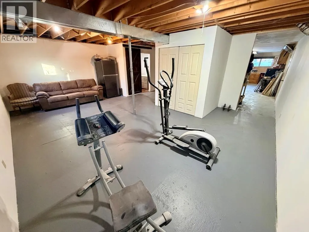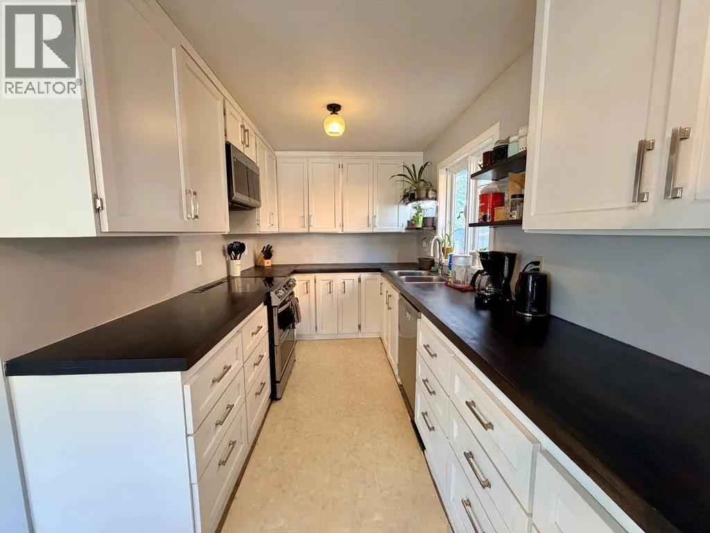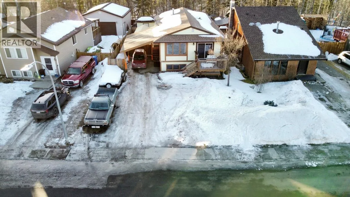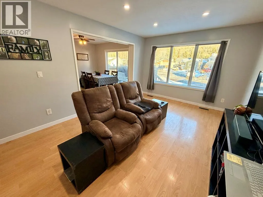 Discover this spacious and uniquely styled 3-bedroom, 2-bath family home, featuring a large carport, front deck, fenced yard, and backing onto a natural treed green space, providing added privacy. The main level offers easy-care laminate and vinyl flooring, generously sized rooms, and a large dining area with a patio door leading to the front deck; perfect for enjoying mountain views