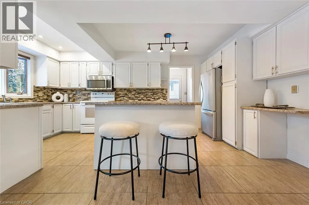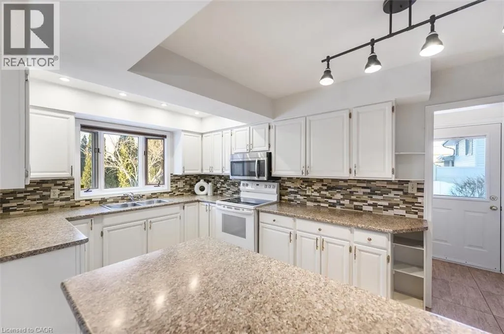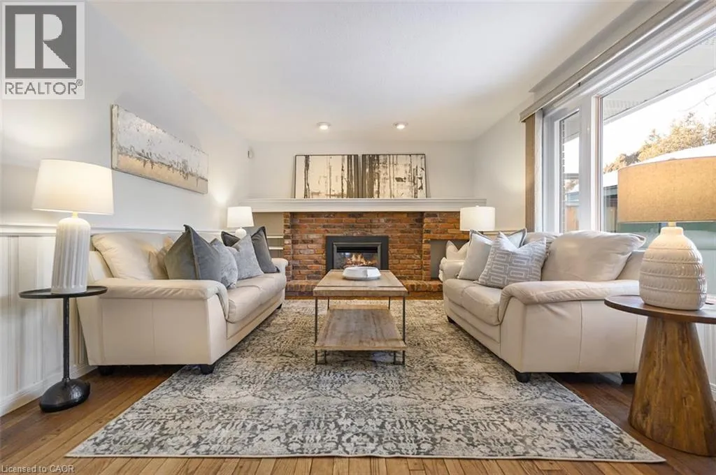 hosting events, and preparing meals. The cozy family room showcases hardwood flooring and a gas fireplace with classic brick surround, creating a warm and welcoming atmosphere, with both the kitchen and family room opening to the large backyard, perfect for outdoor entertaining, children at play, and relaxed family enjoyment. Convenient main-floor laundry, a powder room, and direct garage access complete this level. Upstairs, the grand primary retreat offers a large closet and private 3-piece ensuite, along with three additional generously sized bedrooms and a 4-piece main bath. The partially finished basement provides excellent potential for additional living space with room for your finishing touches. Fantastic location close to schools, parks, highway access, and a wide range of amenities. (id:62650)