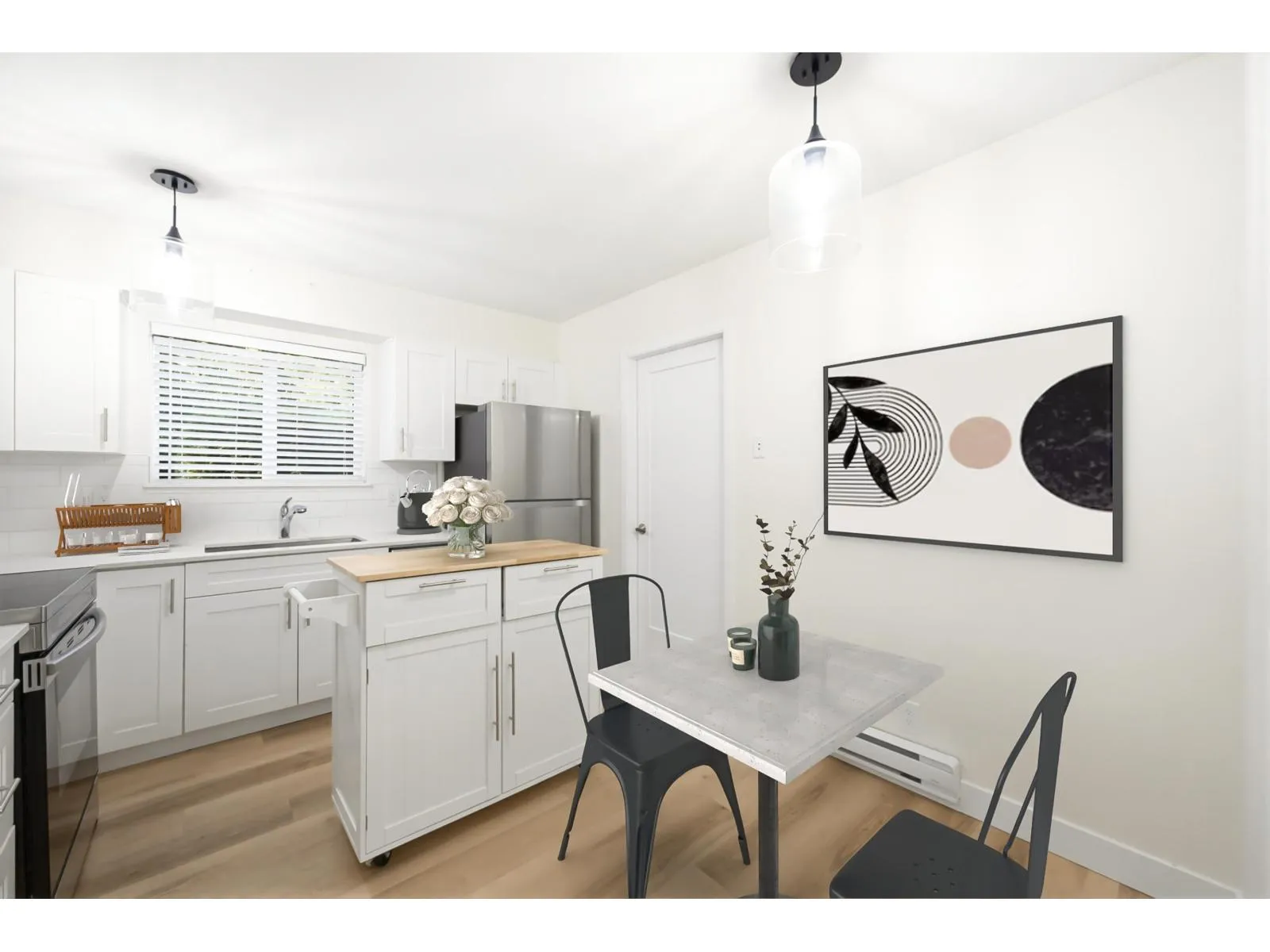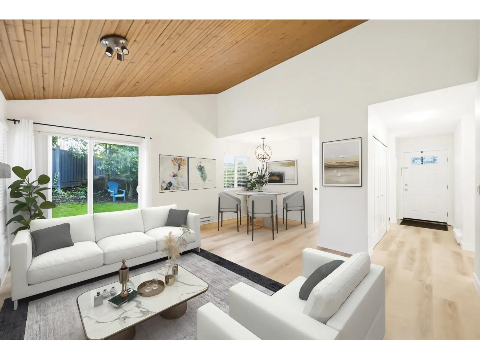 Welcome to Greenside Estates, beautifully renovated from top to bottom. Move in ready. One of the best units. Rancher style 2 bdrm/1bath & 2 parking over 986 sqft. No wasted space. Vaulted ceilings w/exposed beams, abundant natural light in living & dining room. New white modern kitchen w/ ample cabinets, moveable island, quartz countertops, new s/s appliances, massive storage room