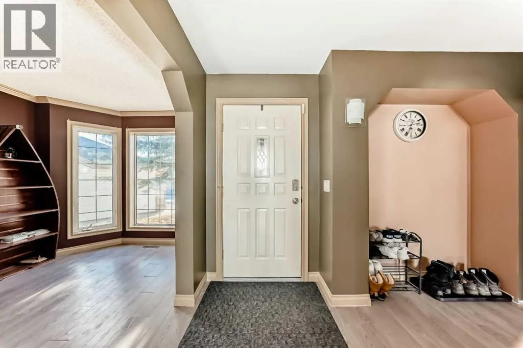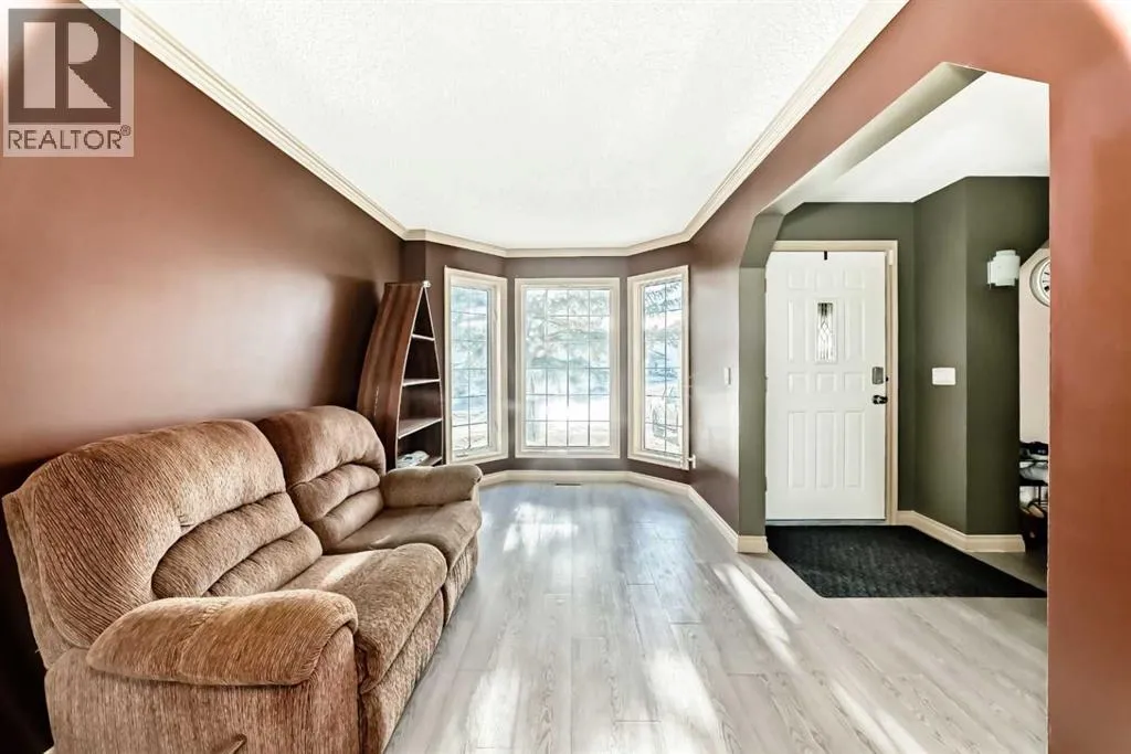 Click brochure link for more details. Great 1,657.70sq ft home in the fabulous community of Douglasdale! Three bedrooms on the upper floor plus another bedroom and storage room in the finished basement, with 3.5 bathrooms in the home. Newer roof (2020) and furnace (2023). Massive fenced backyard with shed and large deck; this yard backs onto the Deerfoot soundwall.