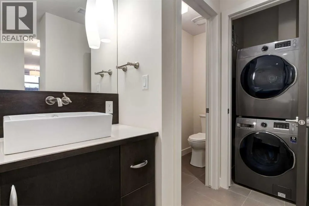 the main living area, you’re greeted w/an EXPANSIVE open-concept floorplan w/9 ft Ceilings all framed w/FLOOR-TO-CEILING Windows, creating a BRIGHT, AIRY SPACE w/a seamless flow for EVERYDAY LIVING & ENTERTAINING. The MODERN Kitchen is designed to IMPRESS w/a STAINLESS STEEL WHIRLPOOL Appliance package, ELECTRIC STOVE, BUILT-IN DISHWASHER, MICROWAVE w/INTEGRATED HOOD FAN, FULL-SIZE FRIDGE + BEVERAGE FRIDGE. Enjoy the GENEROUS QUARTZ Countertops CEILING-HEIGHT Cabinetry w/Pull Out Drawers, a DOUBLE STAINLESS STEEL SINK + a COMMERCIAL-STYLE Pull-down Spray Faucet. The OPEN-CONCEPT Living & Dining Rooms provide a WELL-PROPORTIONED, INVITING space ideal for HOSTING Dinner Parties, RELAXING after a long day, or ENJOYING conversations w/ FRIENDS — all while feeling COMFORTABLE, FUNCTIONAL + EFFORTLESSLY STYLISH. Enhanced w/ DIMMER LIGHTING + WIRED-FOR-SOUND throughout, this space delivers BOTH AMBIENCE + ENTERTAINMENT at the touch of a button. Step outside to your SPACIOUS SOUTH-FACING BALCONY, w/a GAS LINE for BBQ’s + perfectly positioned for ALL-DAY SUN + SWEEPING VIEWS w/rare 3-DIRECTION VIEW CORRIDOR (SE, S, SW). Enjoy SUNRISE TO SUNSET, MOUNTAIN VIEWS, direct sight lines to CENTRAL MEMORIAL PARK + a PREMIUM vantage point for STAMPEDE FIREWORKS—all WELL ABOVE STREET ACTIVITY for ultimate privacy and comfort. A GUEST 2 pc POWDER ROOM adds convenience for hosting.The LARGE PRIMARY SUITE offers more FLOOR TO CEILING Windows + a GENEROUS CLOSET. RETREAT to the SPA-INSPIRED ENSUITE, ft DUAL SINKS, a SEPARATE SOAKER TUB, a FULLY ENCLOSED GLASS SHOWER + a PRIVATE WATER CLOSET, complemented by a STACKED Washer + Dryer for added CONVEN IENCE. The WELL-MANAGED CASTELLO BUILDING is BUILT w/CONCRETE, making this a QUIET, SOLID BUILDING. Enjoy a WELL-EQUIPPED ONSITE GYM, CAR WASH BAY IN THE PARKADE, SECURE UNDERGROUND PARKING + INDOOR VISITOR STALLS, w/FOB-CONTROLLED ACCESS to the building, elevators + amenities, all supported by VIDEO SURVEILLANCE + ON-SITE MANAGEMENT, adding PEACE OF MIND. The building is PET-FRIENDLY (Condo Board Approval Required). Located in the HEART OF CONNAUGHT, Castello places you STEPS FROM DOWNTOWN, 4th Street/Mission, 17th Avenue shopping + dining, Central Memorial Park, River Pathways, Cultural Venues, Transit, Protected Bike Lanes + Everyday Essentials. Enjoy TRUE WALKABLE URBAN LIVING w/all the energy of the city, WITHOUT THE CONGESTION + NOISE of other Beltline locations. Don’t Miss Out!! Book your showing NOW!! (id:62650)