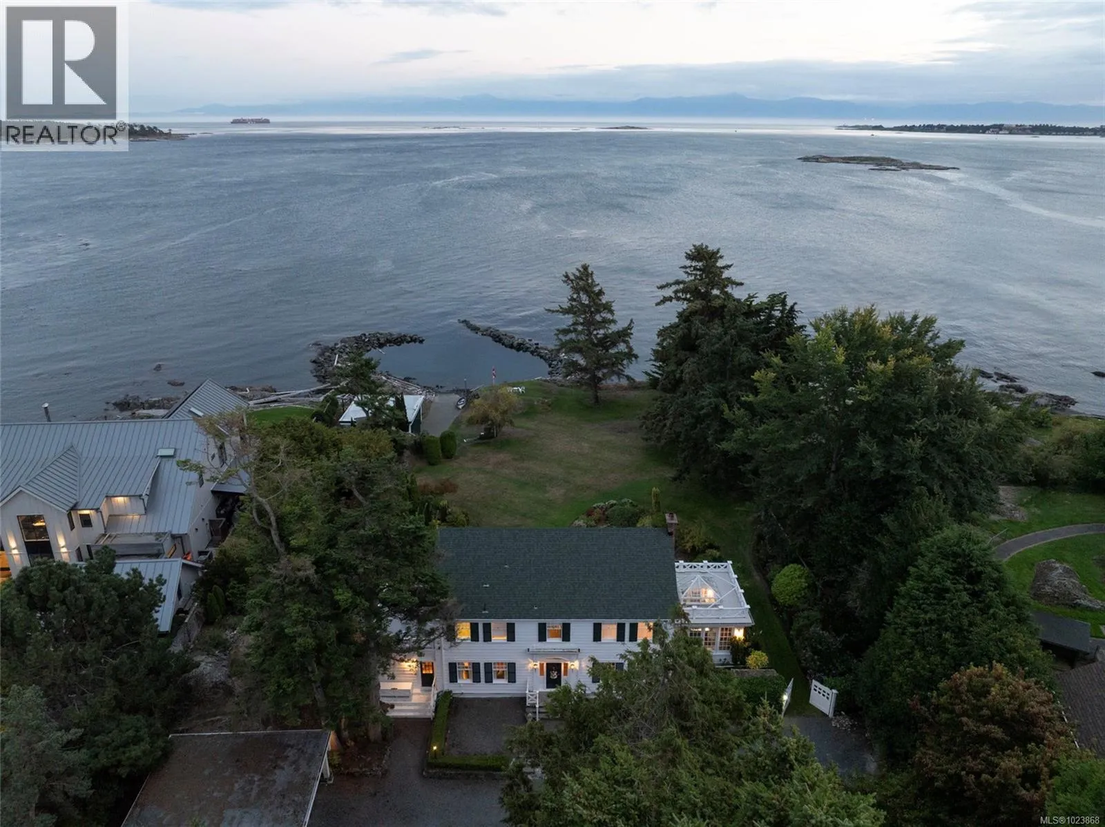 A rare offering of timeless elegance and coastal luxury, this expansive south-facing waterfront estate in prestigious Ten Mile Point is a true sanctuary of beauty, privacy, and refined living. Situated on nearly 1.5 acres of manicured grounds, the property enjoys panoramic views of Chatham, Discovery, and the Chain Islands, with complete seclusion in all directions. Formal gardens, originally designed in