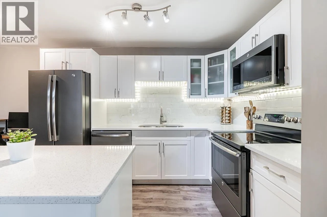 Unique top-floor 1 bedroom plus solarium with a massive 494 square ft south-facing deck offering stunning city and sunset views. Quiet side of the building with excellent privacy and only one neighbouring unit. Fully renovated kitchen with modern cabinetry, quartz countertops, stainless steel appliances, and updated flooring. Bright solarium with warm knotty pine panelling creates a cozy retreat. Enjoy a