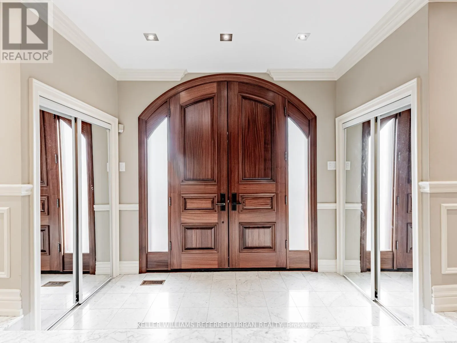 Welcome to a truly exceptional residence-an architectural masterpiece that defines luxury living. Situated on a prominent professionally landscaped corner lot in the most prestigious pocket of the GTA, this immaculate home commands attention from the moment you arrive. A grand arched 8-foot-wide, 2-inch-thick solid oak double-door entrance opens to a Grandioso foyer with soaring 18-foot ceilings, lots of windows, a