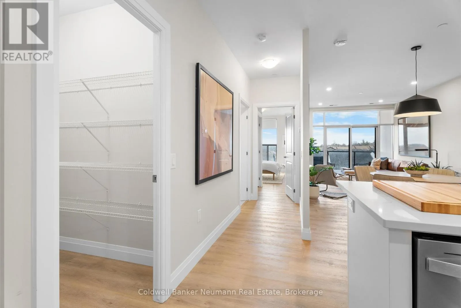 Welcome to Gordon Square III. This well-designed 1-bedroom suite offers bright, functional living in a modern condominium setting. The open-concept layout features a comfortable living and dining area with direct access to a private balcony, extending your living space outdoors. The bedroom includes a spacious walk-in closet, while the kitchen is thoughtfully designed with a rare walk-in pantry, providing excellent
