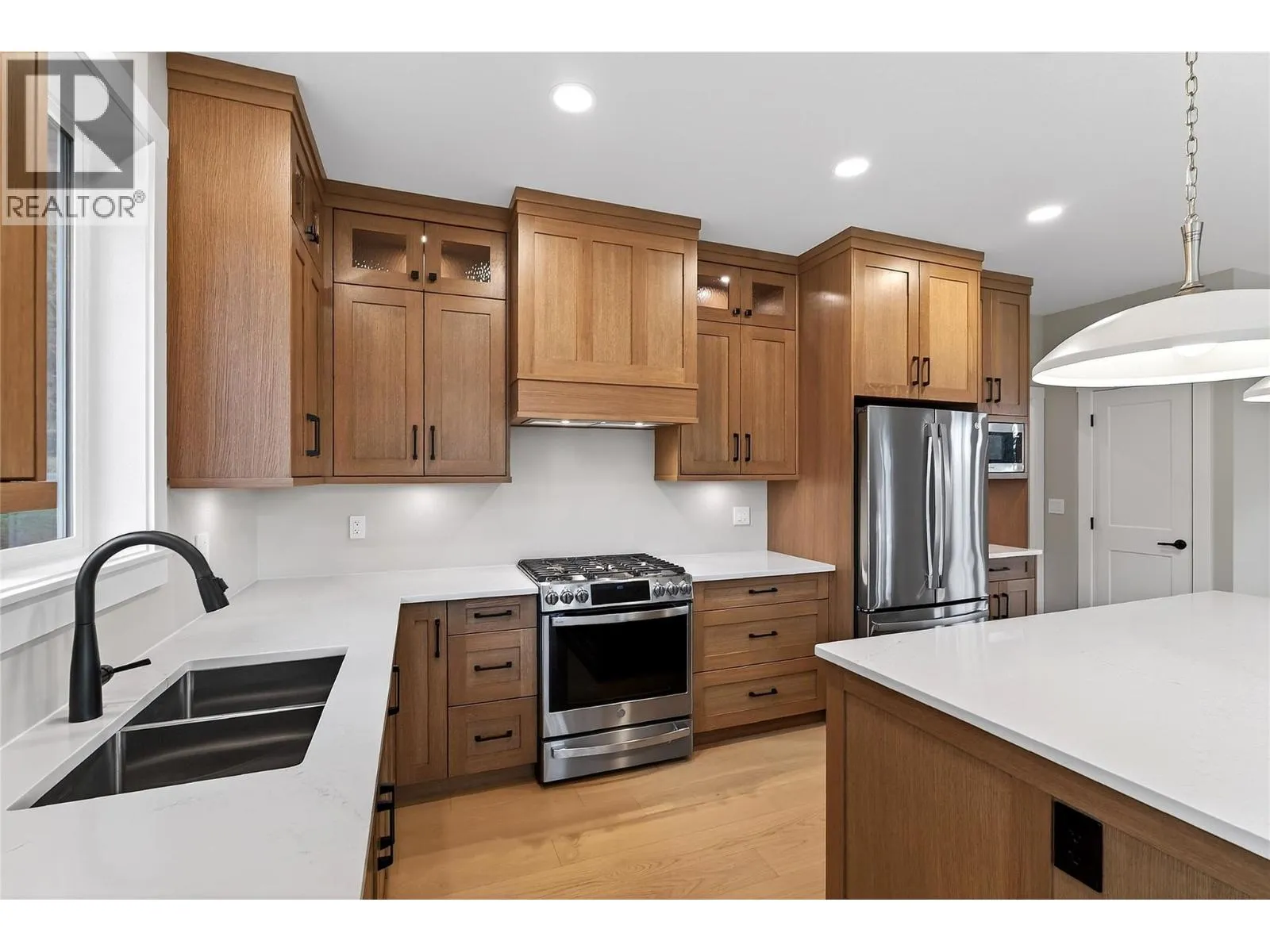 Quality new construction with lake and mountain views! 4 bedrooms, plus den, 3 bath with an amazing layout- level entry and main level living with a fully finished daylight basement including gym space and plumbed for an extra kitchen or extra washer/dyer if you wanted a suite or to use for your company. This beautiful home features include a custom
