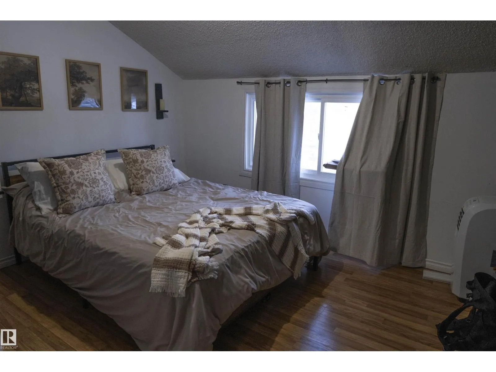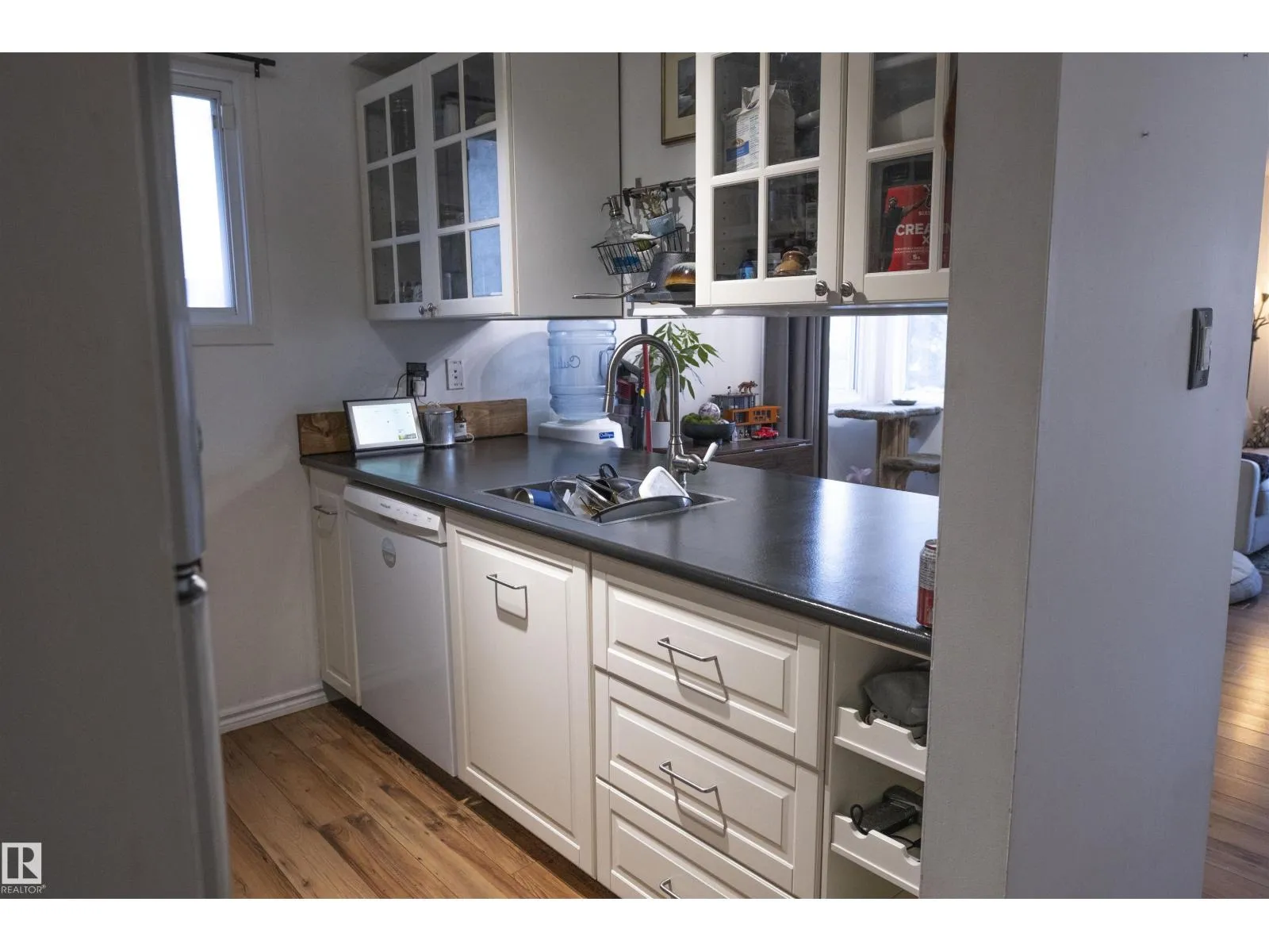 BRIGHT, FUNCTIONAL & MOVE-IN READY. Welcome home to this well-kept 2-storey townhouse in the family-friendly community of Dunluce. Offering 860 sq ft, this home features 2 bedrooms and a full 4-piece bathroom with a practical, efficient layout. The main floor includes a spacious living room with a wood-burning fireplace and access to a balcony with planter boxes overlooking park space.