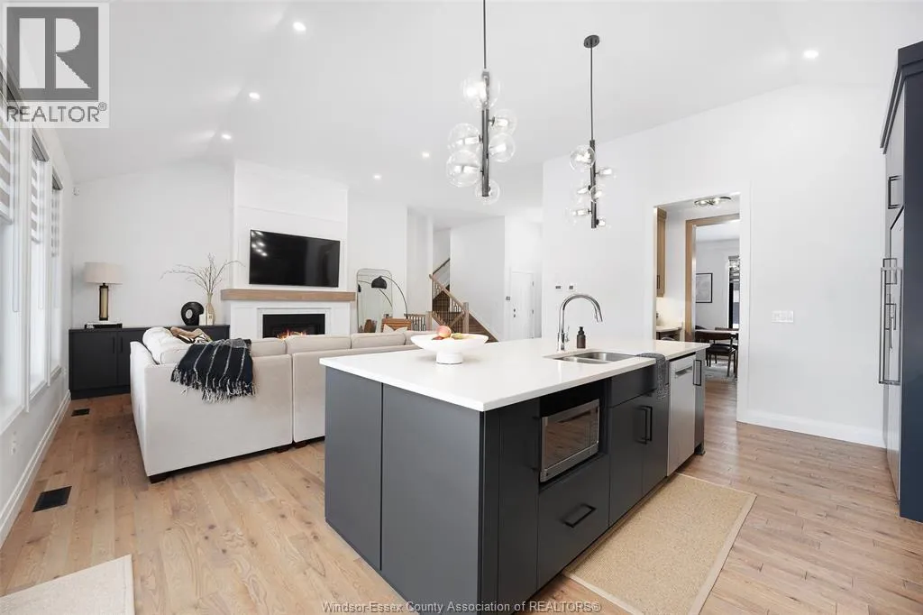 939 Chateau is a custom Lakeland-built brick five-level split located in a highly sought-after East Windsor neighbourhood. This beautifully designed home features a bright porcelain-tiled foyer, formal dining room with access to a butler’s pantry with coffee and wine bar, and a stunning designer kitchen with custom cabinetry, quartz island, and statement lighting. The open-concept great room showcases a gas