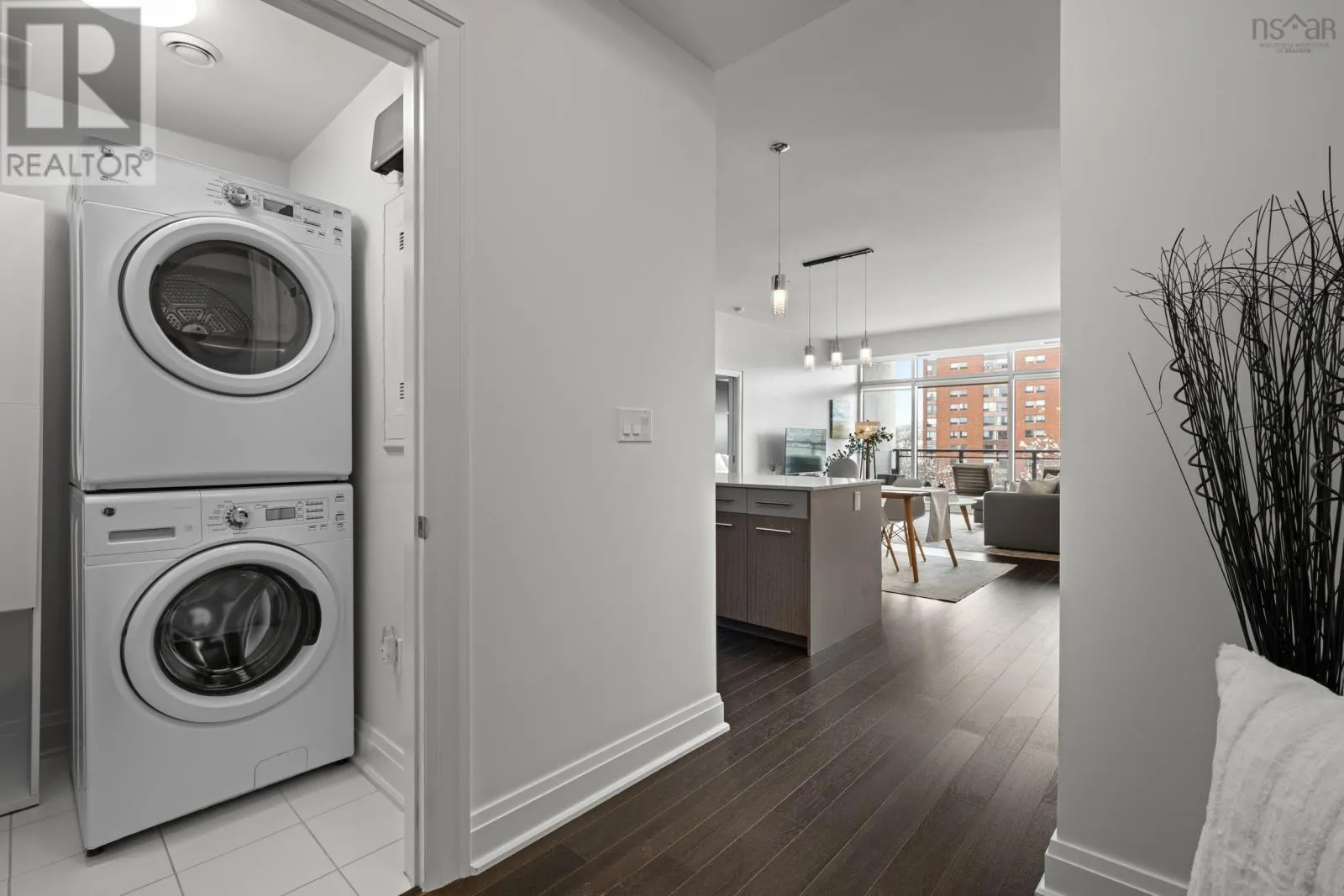 Modern, convenient condo living in the heart of Downtown Dartmouth. Welcome to The Avery and this bright, spacious suite offering views of the Macdonald Bridge. This unit is thoughtfully designed with numerous conveniences, including a contemporary kitchen with a large island, quartz countertops, stainless steel appliances, and a layout that makes excellent use of the space ideal for both
