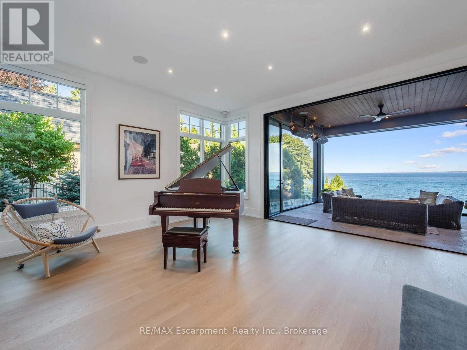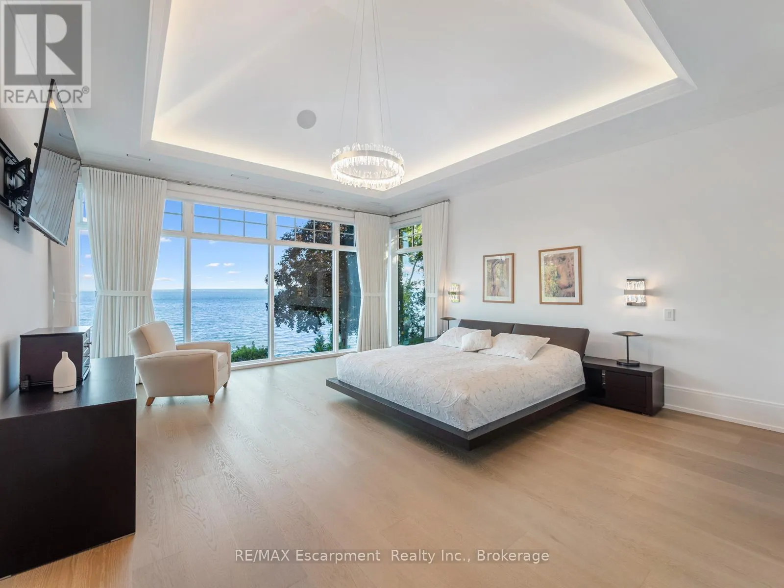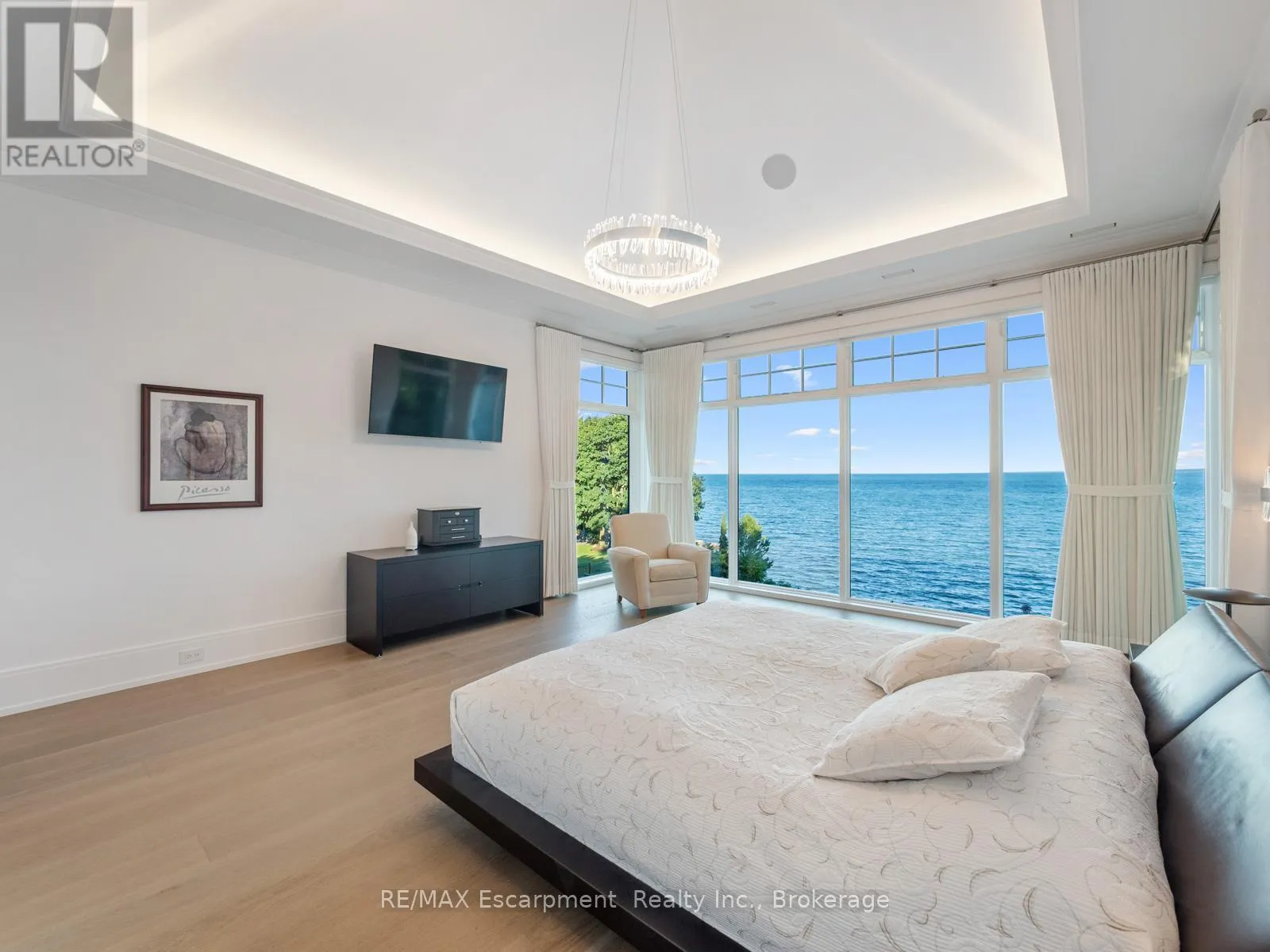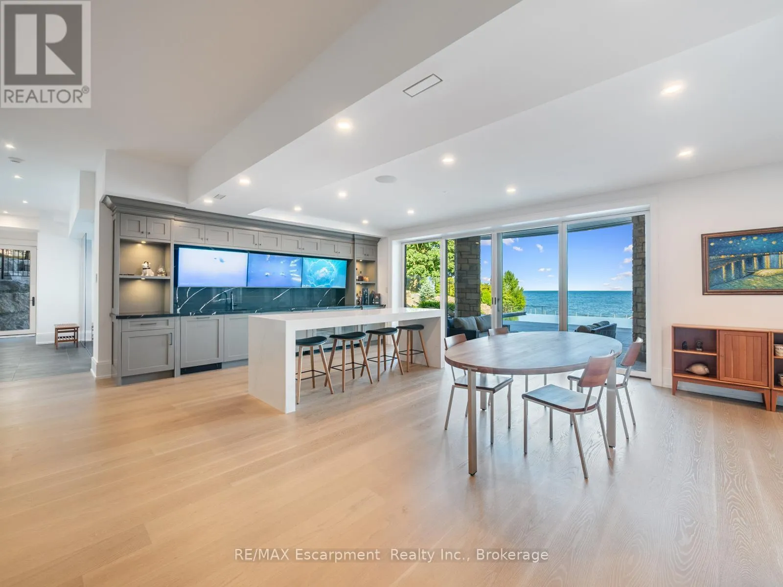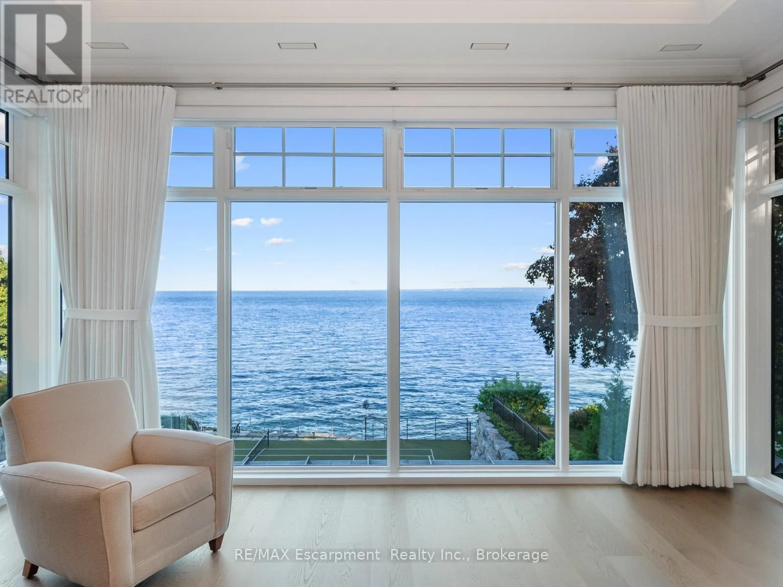 The Haven. A rare waterfront estate on a private laneway in South Burlington. Set on nearly 3/4 of an acre with 103 ft of shoreline and full riparian rights, this property offers privacy, direct lake access, 11,417 Sq ft of living space and a lifestyle that feels like a luxury resort without leaving home. Inside, the lake takes centre stage.