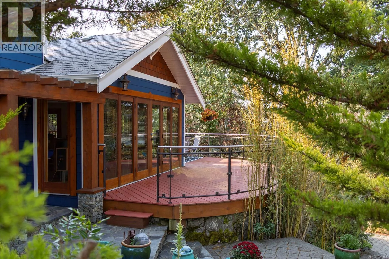 Modern luxury in a stunning West Coast home with rich wood detailing throughout. Set on a quiet, beautifully landscaped 0.36-acre private lot, this hidden gem offers the best of indoor-outdoor living – enjoy ocean views and sunsets from the front deck and unwind on the secluded back patio. The open-concept layout features vaulted ceilings, hardwood floors, and a natural rock