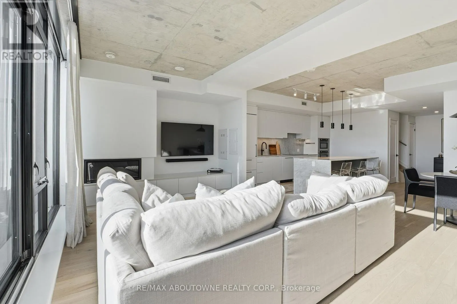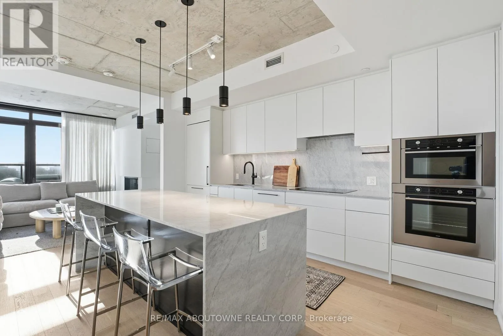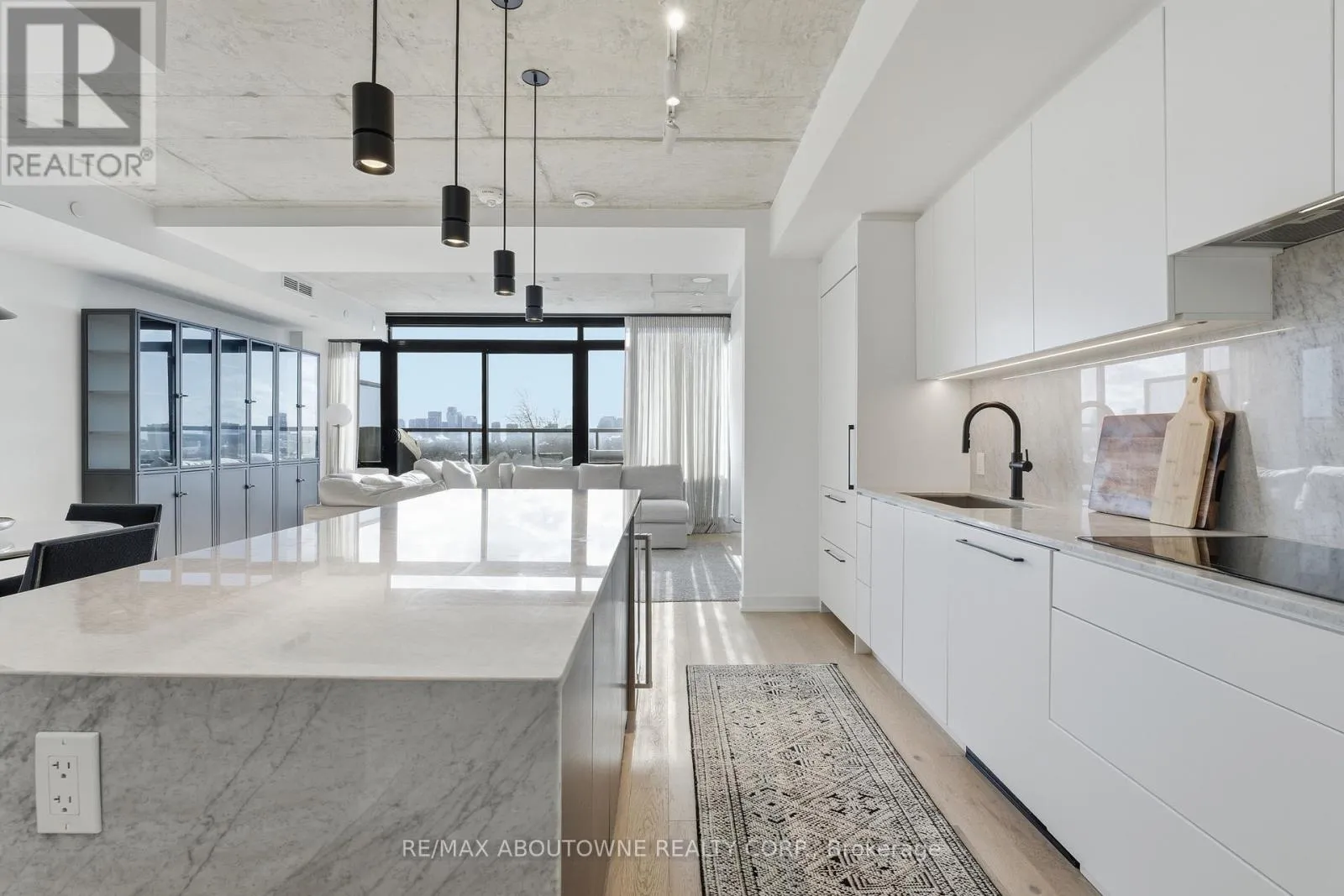 Unique south-facing, two-storey penthouse at The Carvalo on College. A condo that doesn’t feel like a condo – this stylish, modern suite offers 1,377 sq. ft. of living space, two large private terraces (+295 SF), & two owned parking spots. Featuring lofty 9′ ceilings, floor-to-ceiling windows framing beautiful skyline views, and hardwood floors that create a bright, airy atmosphere. The