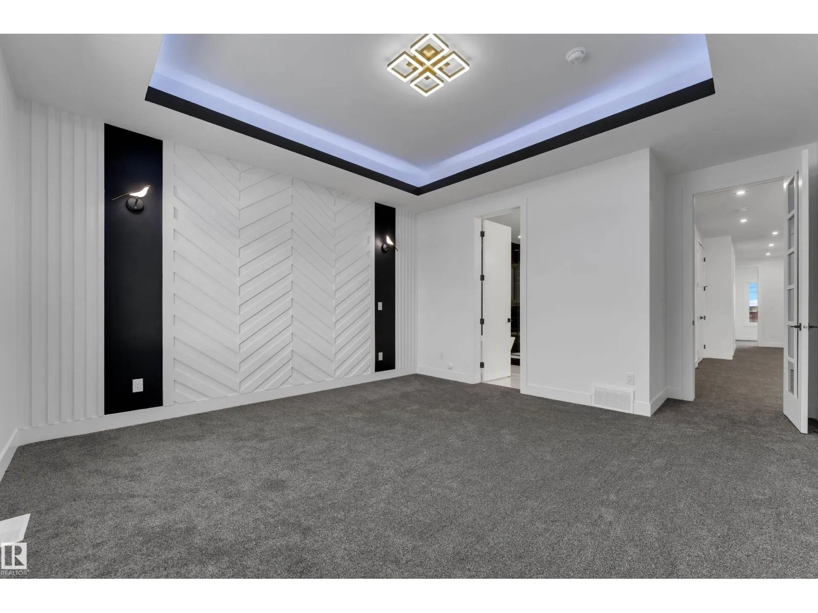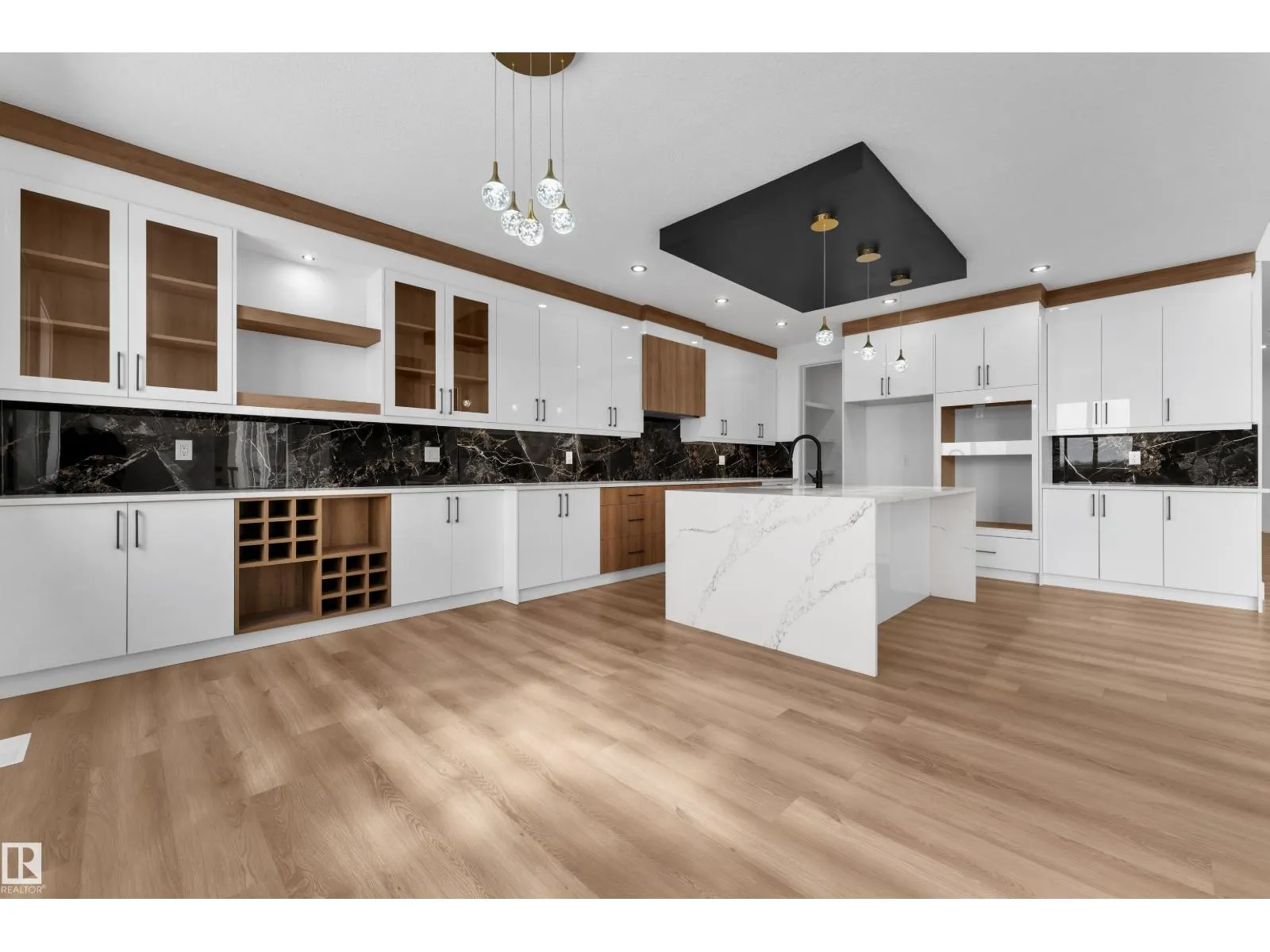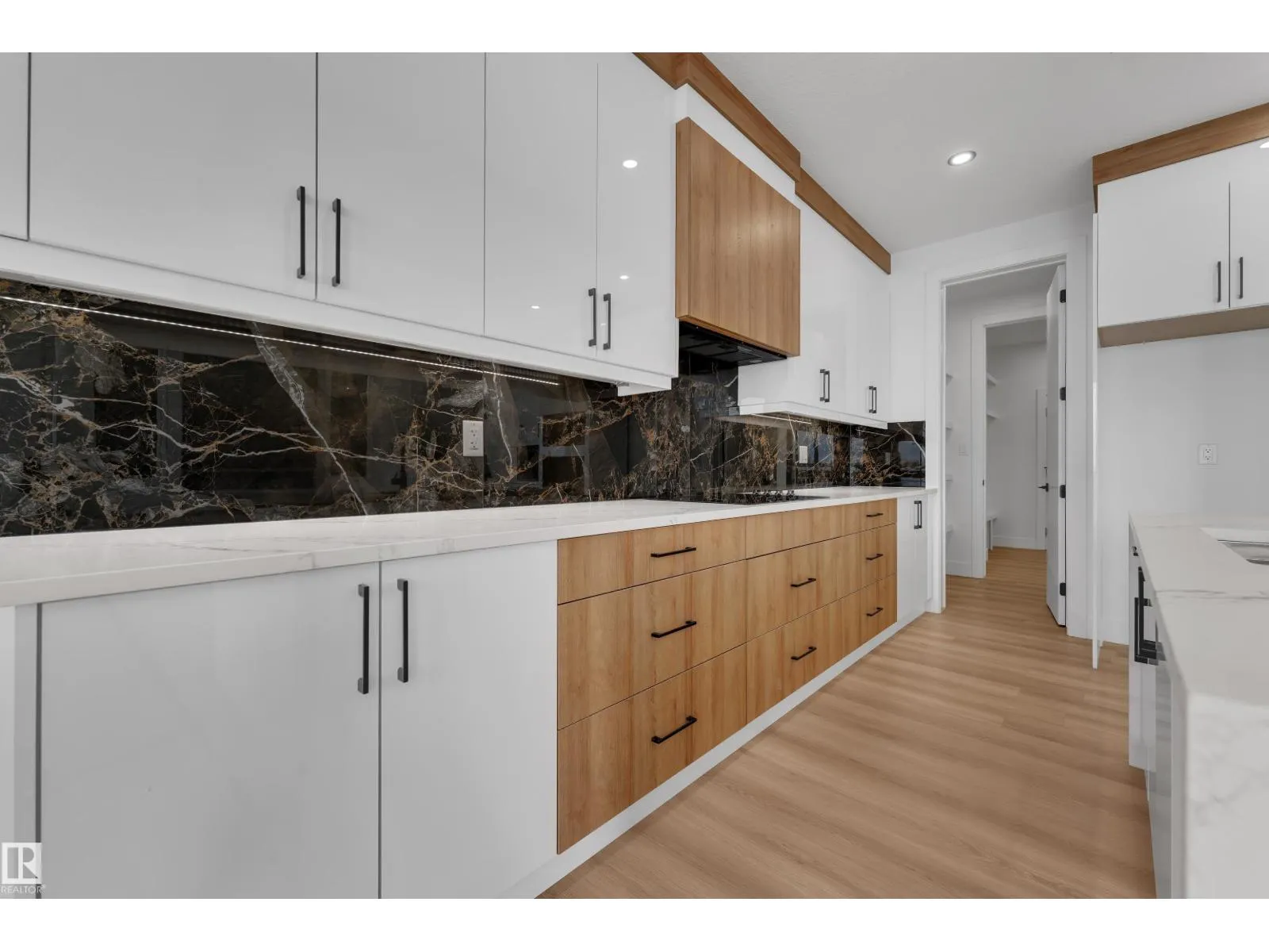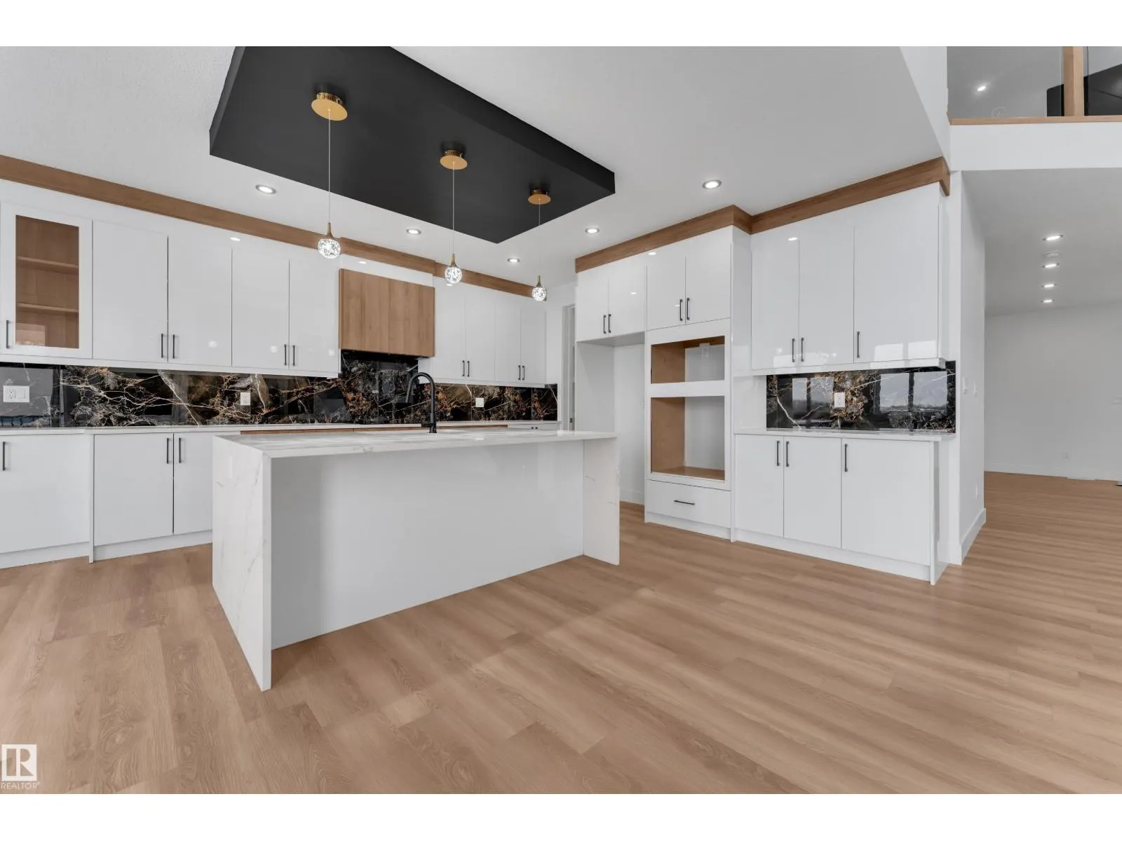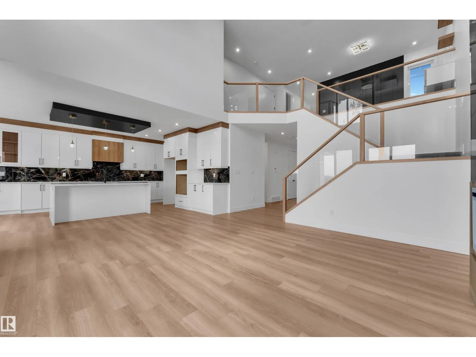 WALKOUT HOME || BACKING TO TRAIL || TRIPLE TANDEM CAR GARAGE || BEAUTIFUL VIEWS OF PARK IN FRONT || This beautifully styled home offers a main floor den with a full bathroom, perfect for guests or a home office. The chef’s kitchen features high-end quartz countertops, a stunning two-sided waterfall island, a pantry with MDF shelving, and an extended kitchen