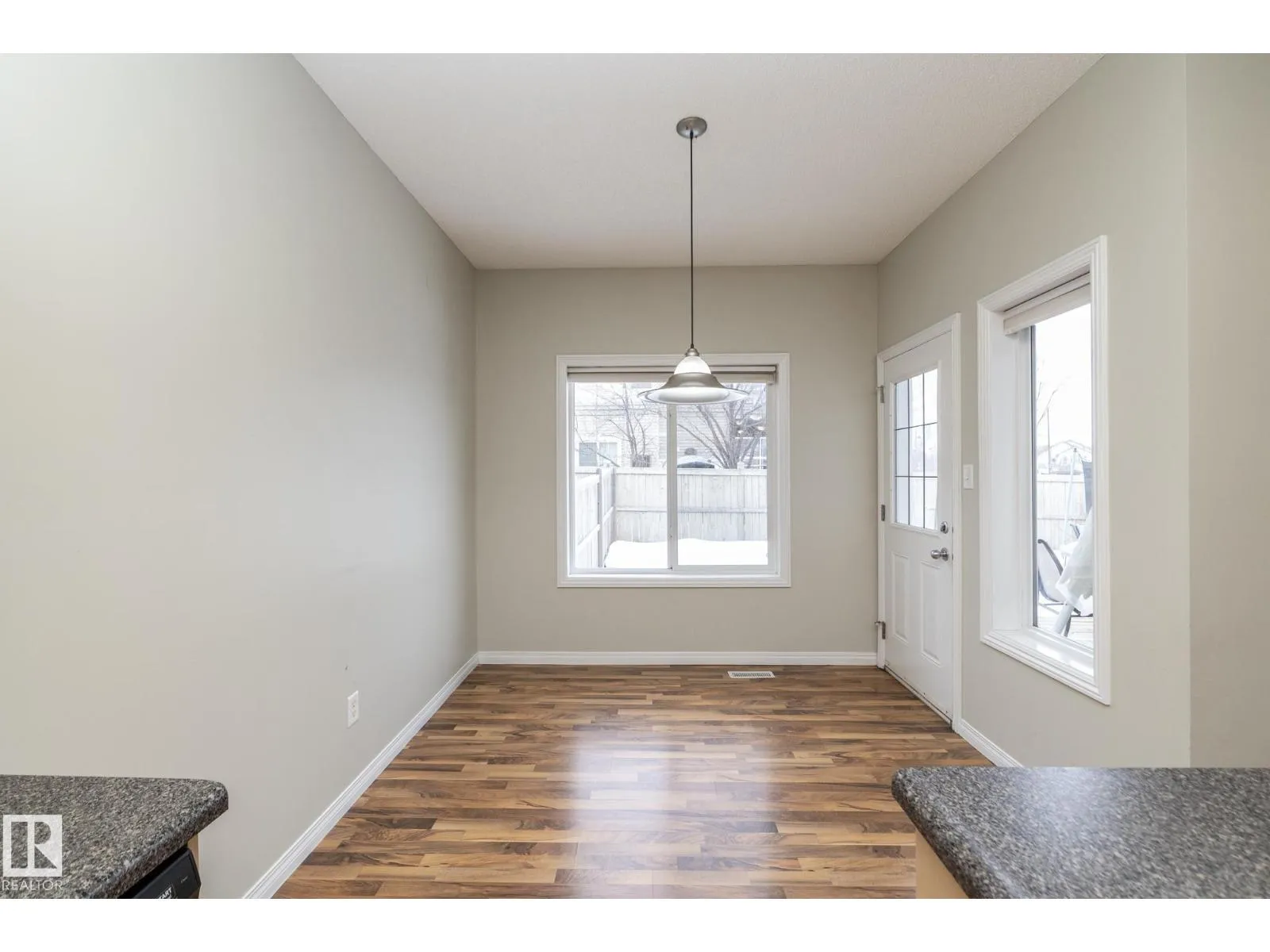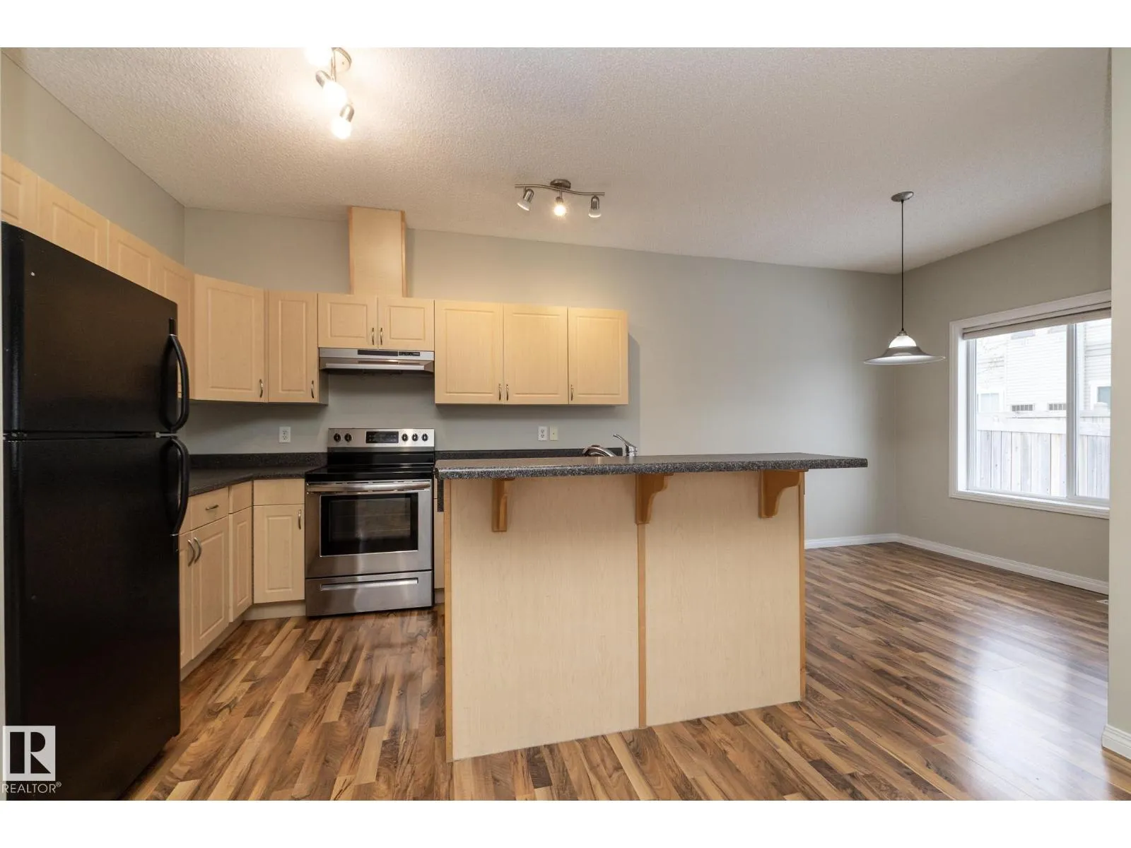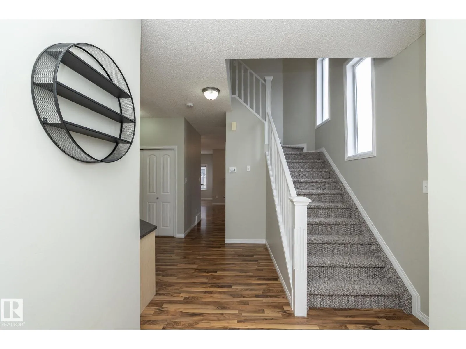 Welcome to the vibrant community of Rutherford. This stylish half duplex offers a fantastic opportunity with NO CONDO FEES and a smart, functional layout. The spacious front foyer provides access to the attached garage, a convenient two-piece bathroom, and a built-in desk ideal for a home office. The open-concept main floor features a bright kitchen with maple cabinetry, modern paint