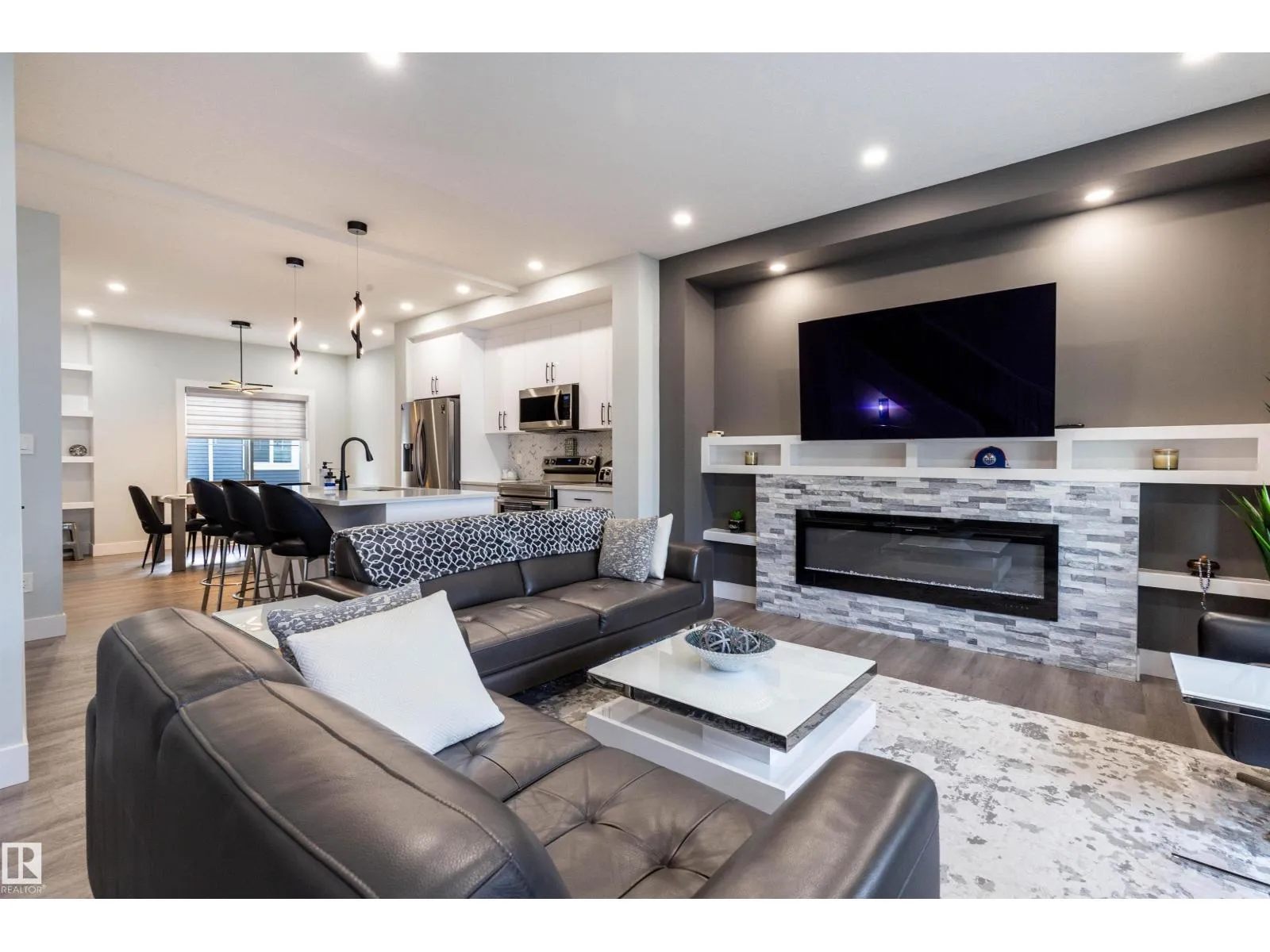 METICULOUSLY MAINTAINED AND BARELY LIVED! Just under 1700sq ft of spacious and open floor plan living with UPGRADES GALORE in the sought after complex of Edgemont Townhomes. Good size kitchen with extended kitchen cabinets, quartz counters, tile backsplash, soft close doors/drawers, large centre island and all upgraded SS appliances. Large LR area with a linear electric fireplace which changes colours
