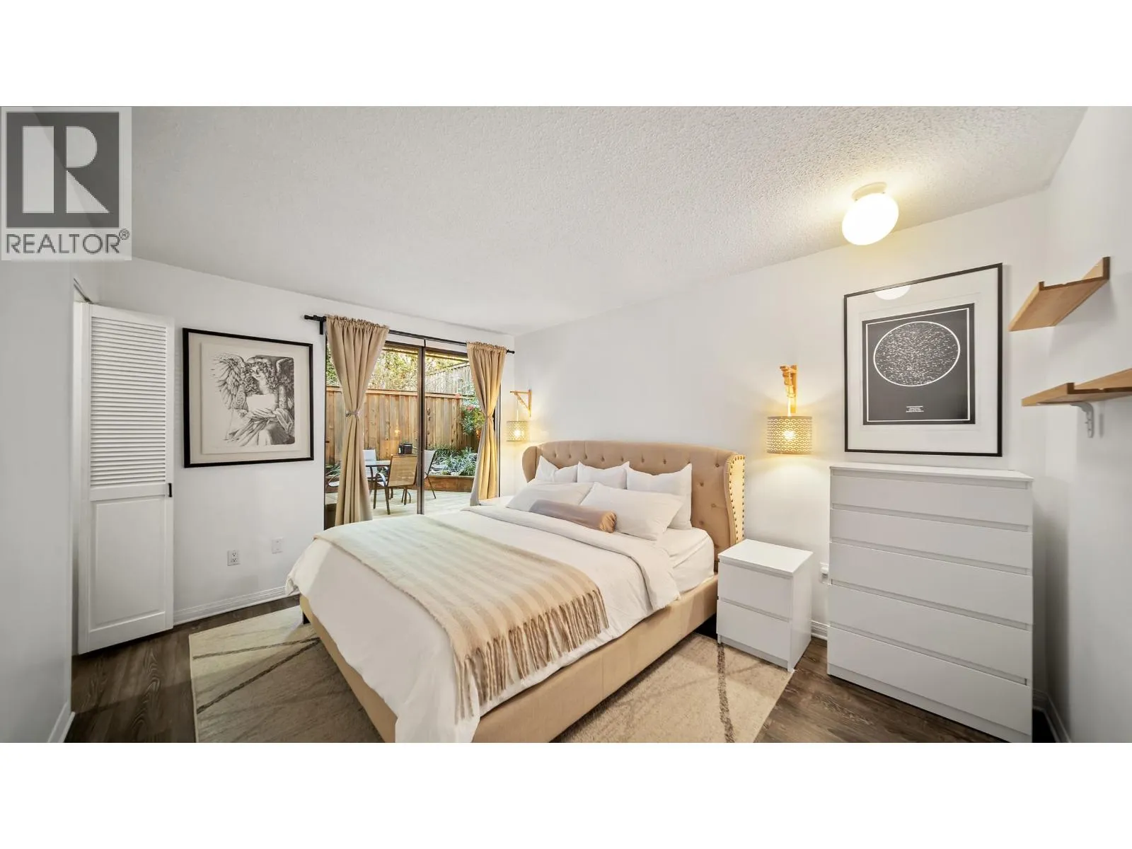 Updated 1bed home with a RARE 428 SQFT PRIVATE PATIO in Burnaby´s sought-after Capitol Hill. Renovated KITCHEN with stainless appliances and counters flow into spacious dining + living area with a cozy FIREPLACE. Large bdrm can comfortably fit king-size bed & includes a WALK-IN CLOSET with custom shelving. Renovated BATHROOM features stylish finishes & double-sink. Step outside to your FENCED