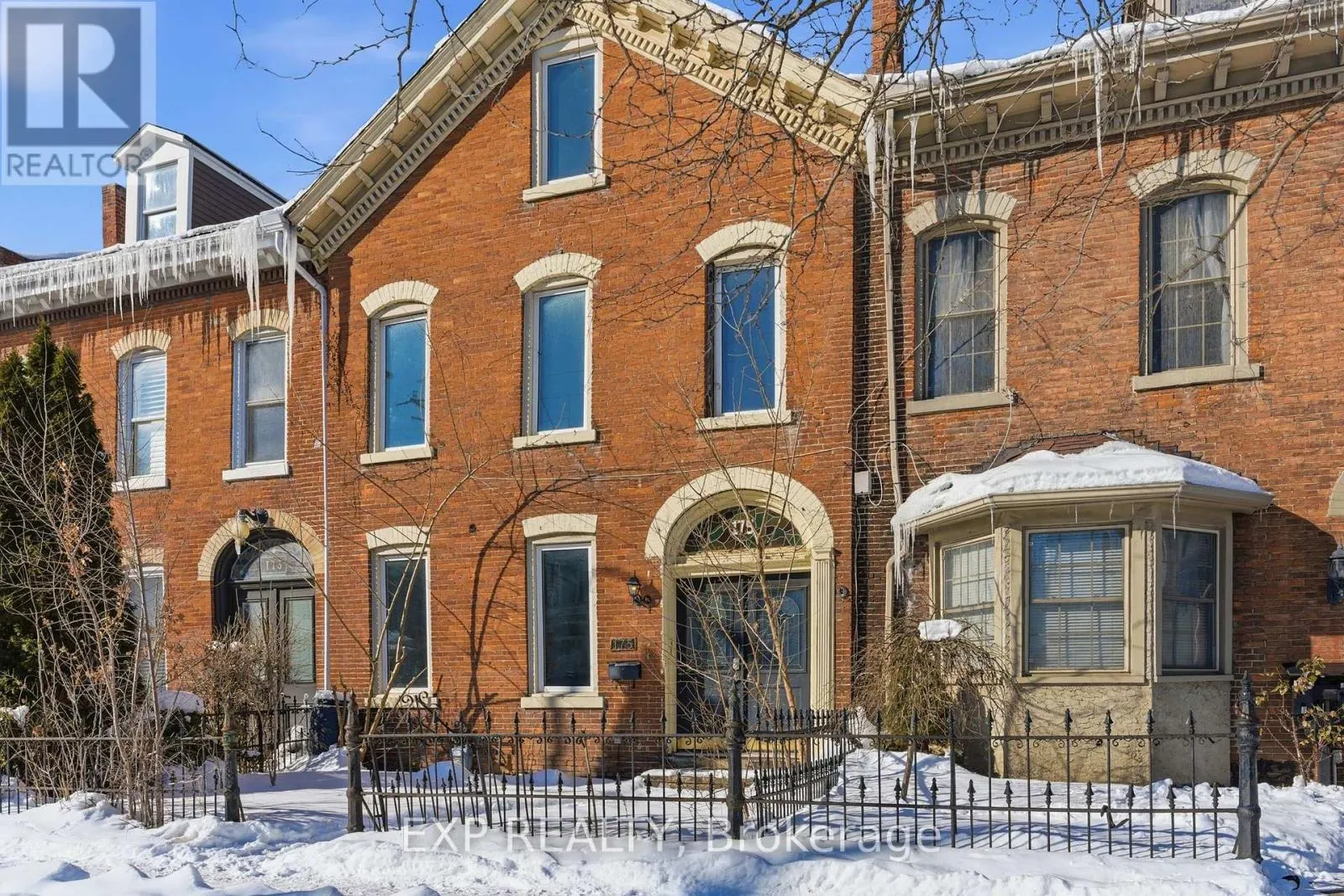 175 King Street isn’t a “cookie-cutter” kind of place – it’s the kind of home that stops you mid-scroll. This very cool 2.5-storey century townhouse brings serious character, from its stately red brick façade and gabled roofline to the old-world street presence you just can’t recreate today. Inside, 9-foot ceilings and large west-facing windows flood the main floor with natural