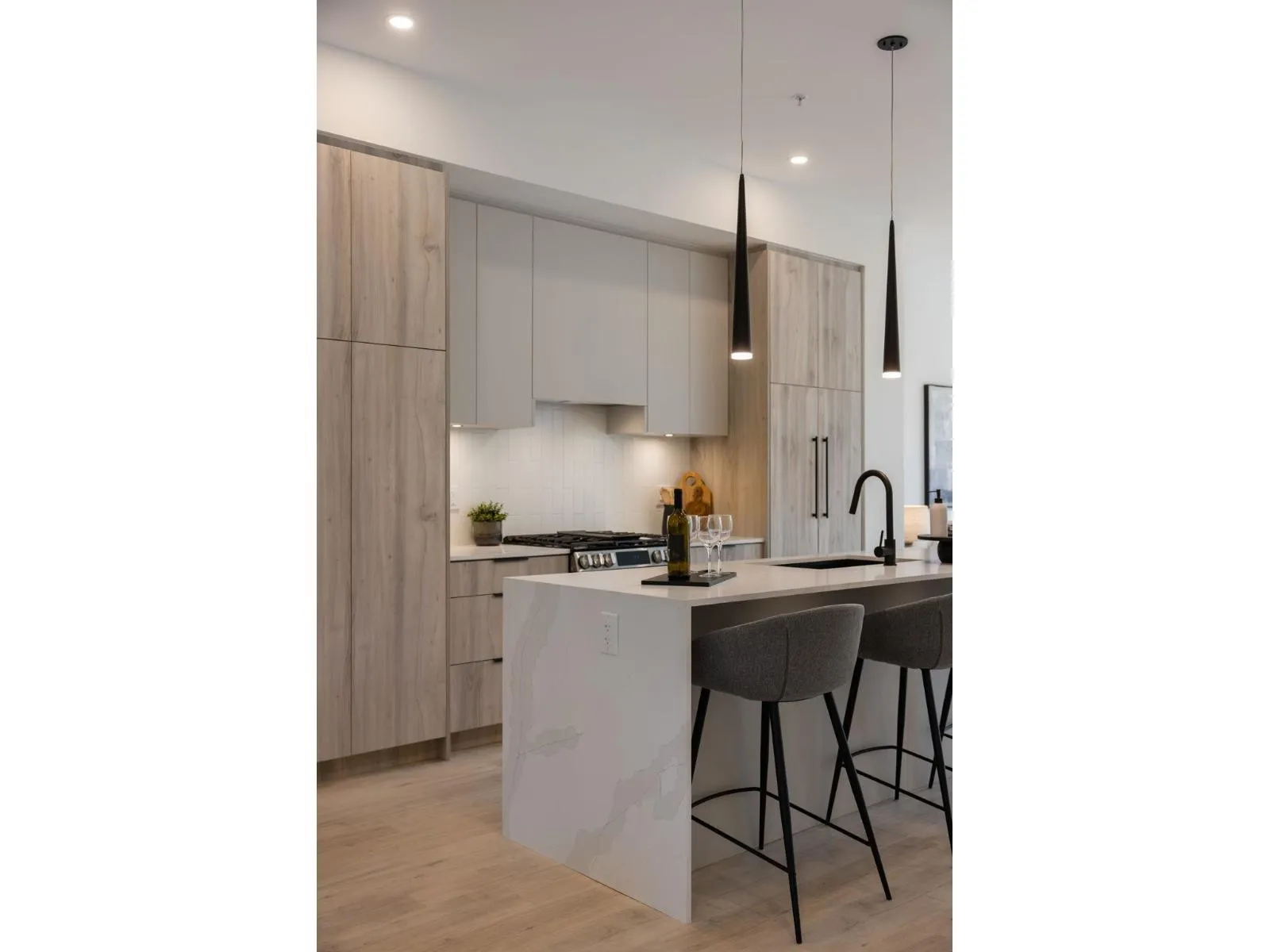 Rare fee-simple rowhome with NO strata fees at Oxford Mews by Leone Homes. This brand-new, move-in-ready 3-level home offers 5 bedrooms & 4 bathrooms, including a 1-bed in-law suite on the ground level. Enjoy approx. 2,198 sq ft of interior living, side-by-side double garage with EV rough-in, 10′ main-floor and 12′ bedroom ceilings, central A/C, gas cooktop, quartz countertops, and