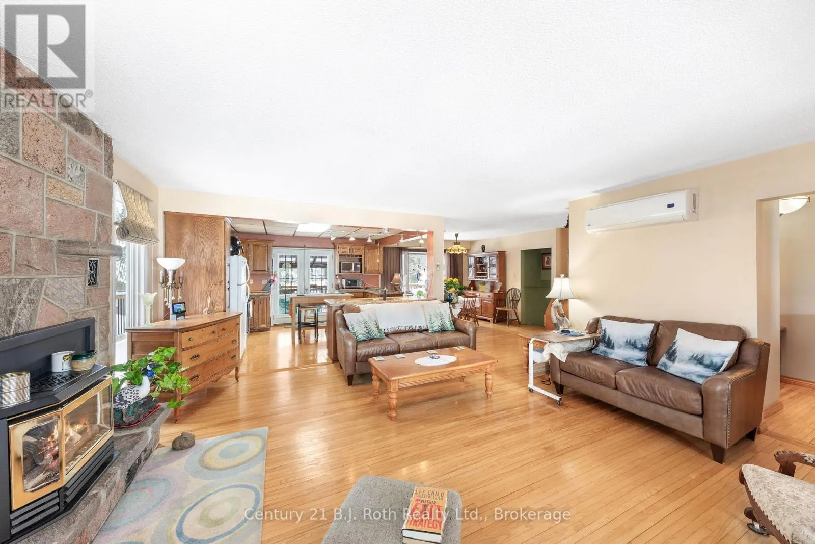 Welcome to a rare opportunity to own a cherished waterfront retreat, offered for sale for the very first time. Set in the heart of prime cottage country, this inviting three-bedroom, one-and-a-half-bath home blends comfort, craftsmanship, and unique waterfront opportunity. Inside, hardwood floors flow through most of the home, creating warmth and timeless appeal. The well-appointed kitchen features elegant quartz countertops