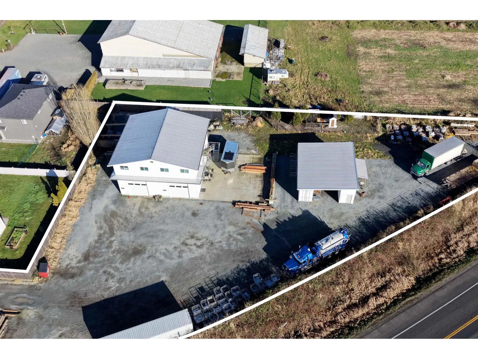 2 ACRE property in the desirable Salmon River area with high exposure and dual road frontage on 72 Avenue and Highway #10. Features a fully renovated2,685 SQ/FT, 3-level home in 2022, offering 4 bedrooms and 3 bathrooms, air conditioning, updated flooring, wood-burning, and gas fireplaces. large patio and spacious rec room with wet bar and office. Outstanding outbuildings include a