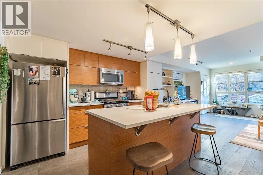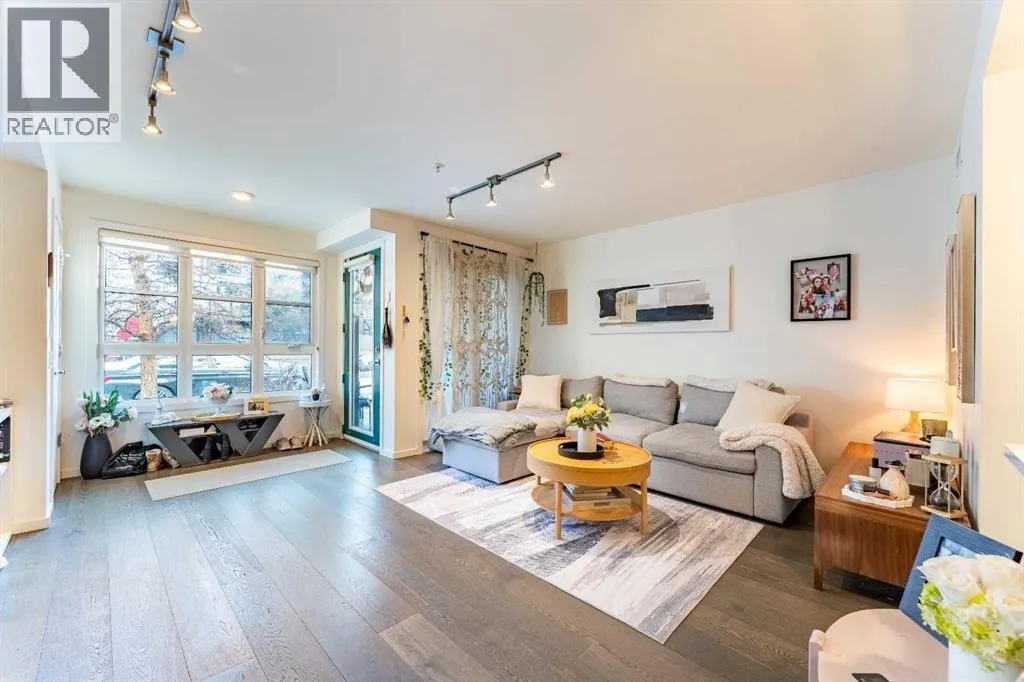 Welcome to The Block, featuring some of the most desirable walkout brownstone-style one-bedroom units in the building—rarely available. Located on a quiet street just off 17th Avenue, this pet-friendly condo offers the ideal balance of inner-city convenience and peaceful living. The bright, open-concept layout is filled with natural morning sunlight and features hardwood flooring throughout (no carpet), flat