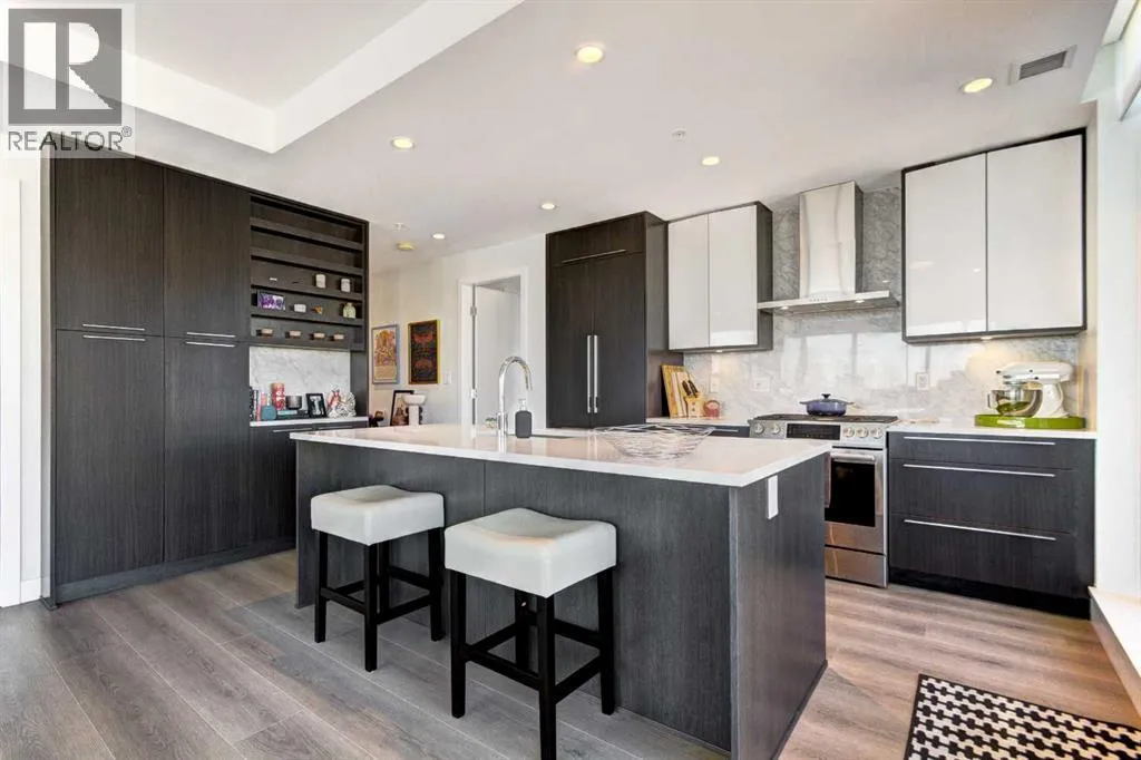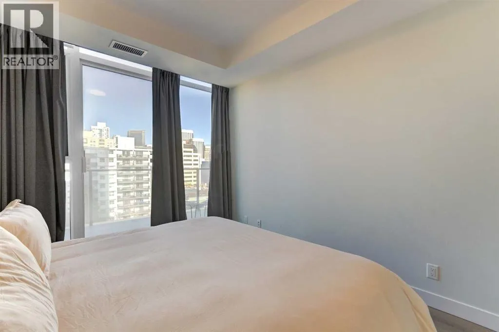 Welcome to unit 703 in The Royal! A lovely 2 bedroom 2 bathroom double balcony corner unit with stunning downtown views. The floor to ceiling windows flood the main living space with natural light and the north and east vistas are stunning. The bright kitchen is fully equipped with a large quartz island, high end appliances, plenty of cabinet and