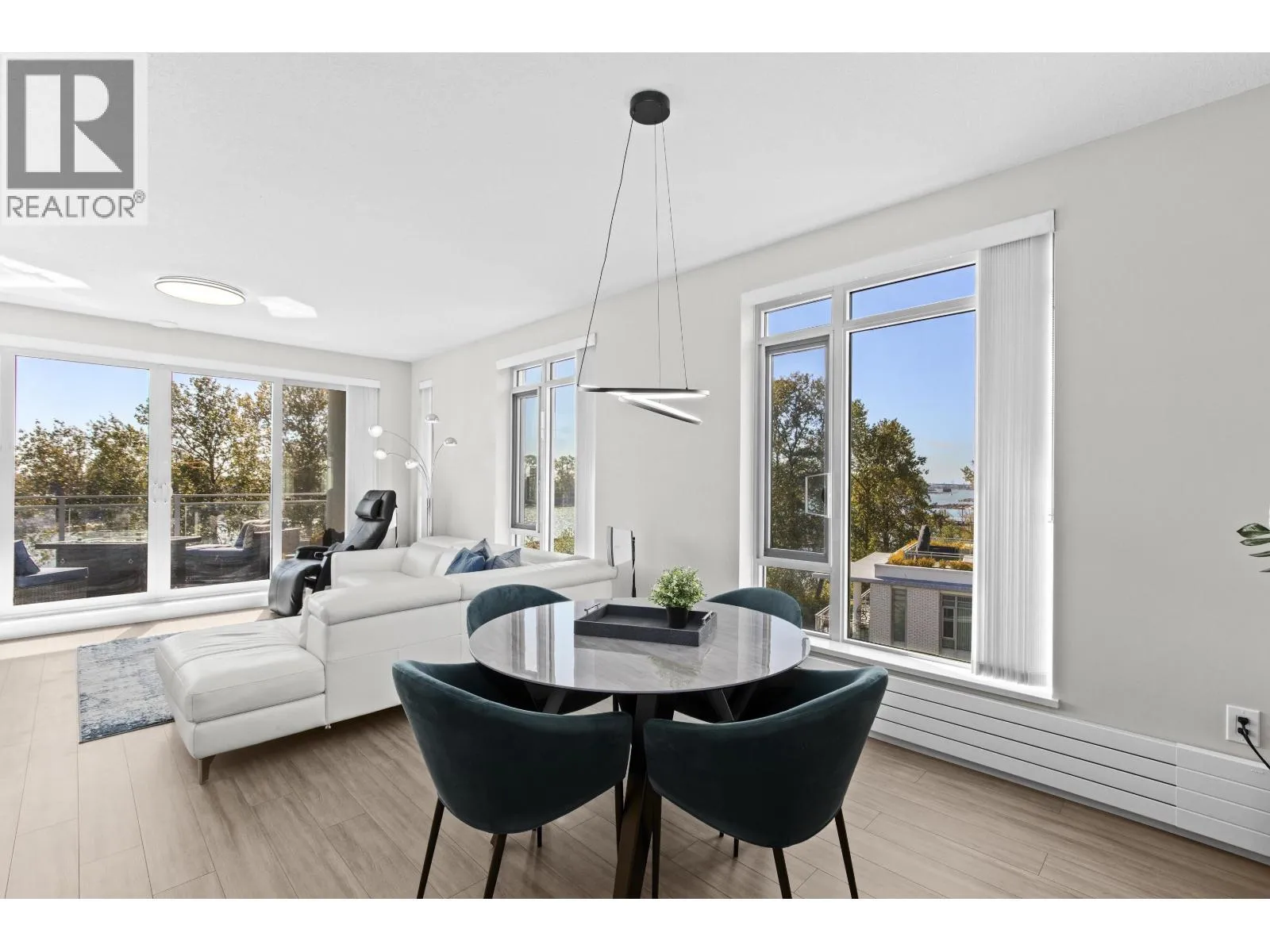 Indulge in breathtaking 180° water views from this pristine corner home, with a perfect vantage to revel in the outlook of the Fraser River from every room. Spanning a generous 1,138 sqft, discover 2 bedrooms, 2 full baths, & a dedicated office. Relish in the chef-inspired kitchen showcasing a gas stove, high-end Bosch appliances, & a vast island – perfect