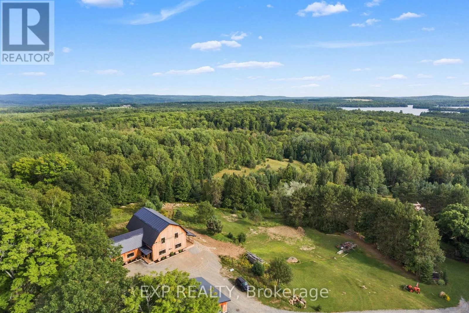 Welcome to this breathtaking custom-designed barndominium, perfectly set on over 23 acres of pristine countryside in the heart of Hastings-Carlow Mayo Township. Newly built in 2024, this remarkable home offers unobstructed panoramic views and a rare blend of modern comfort with timeless rural charm. Inside, soaring 20+ foot ceilings create an open, light-filled atmosphere, complemented by a thoughtful mix of