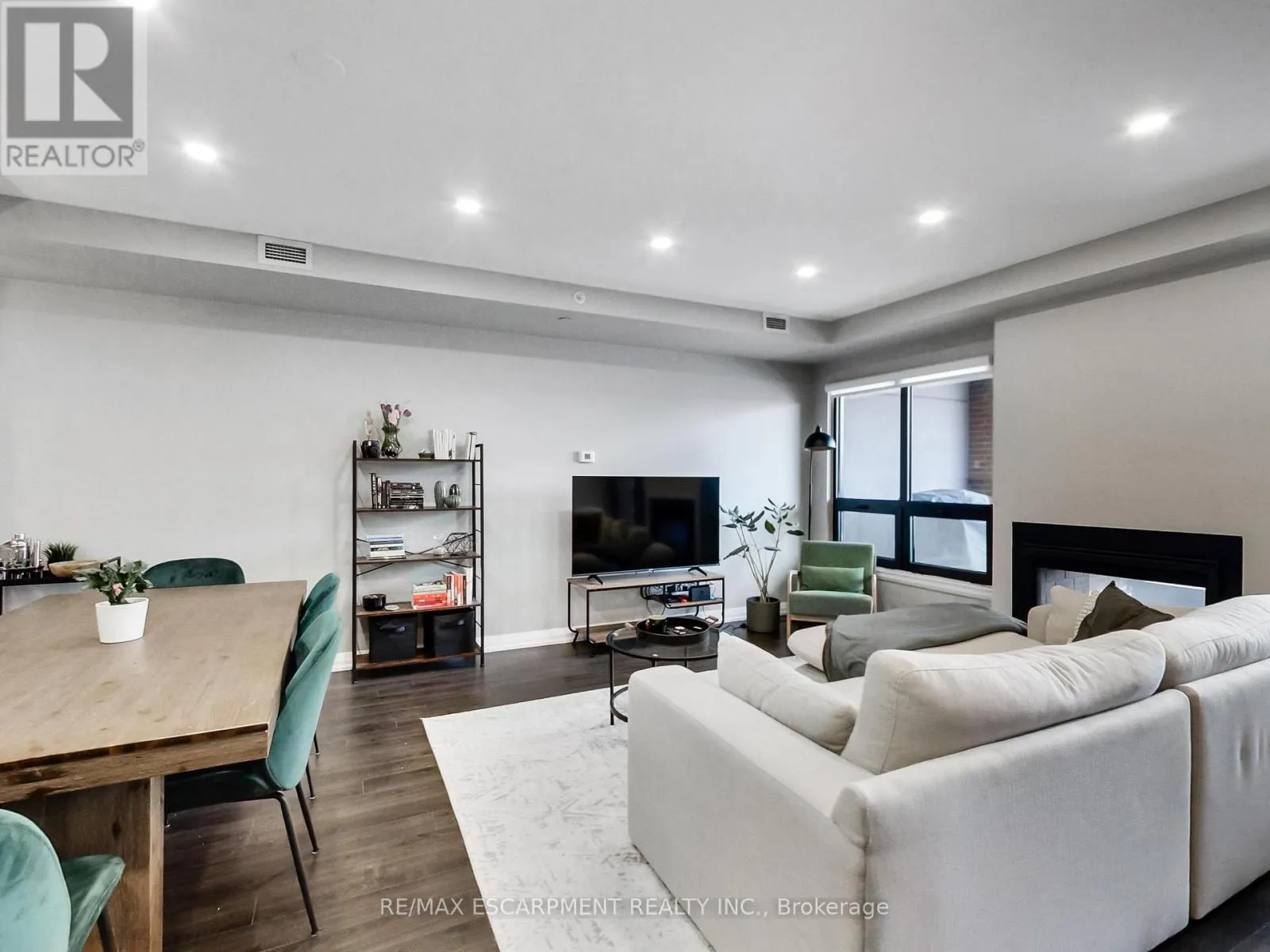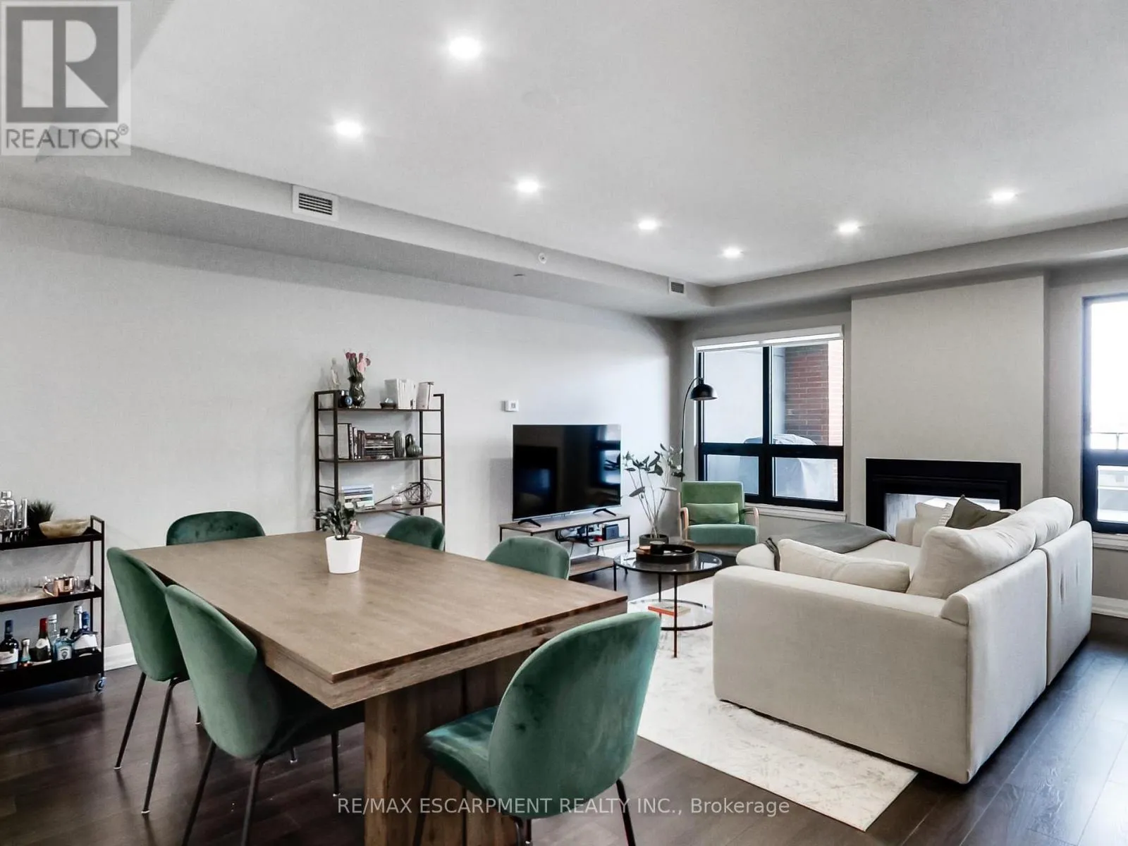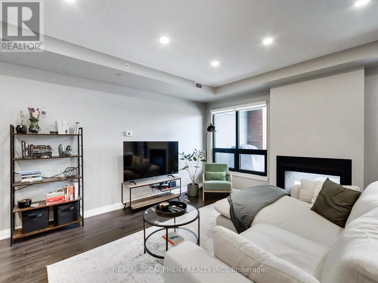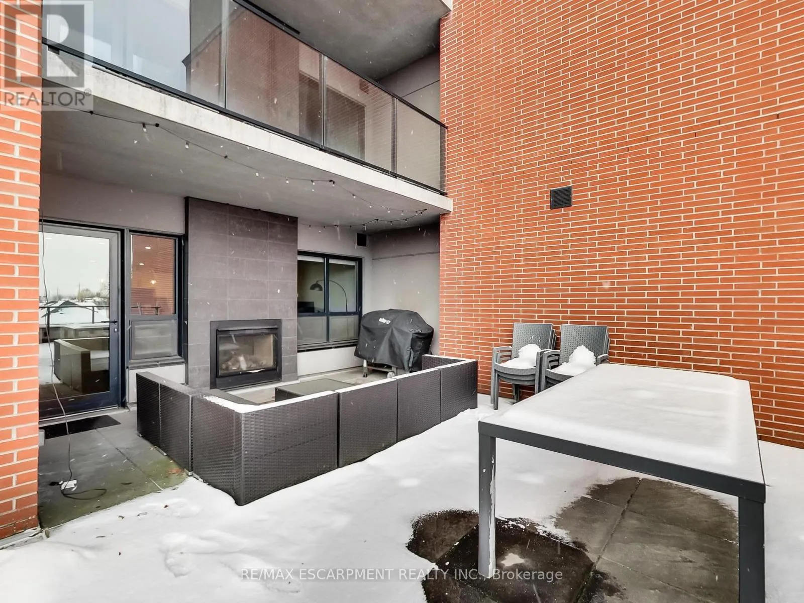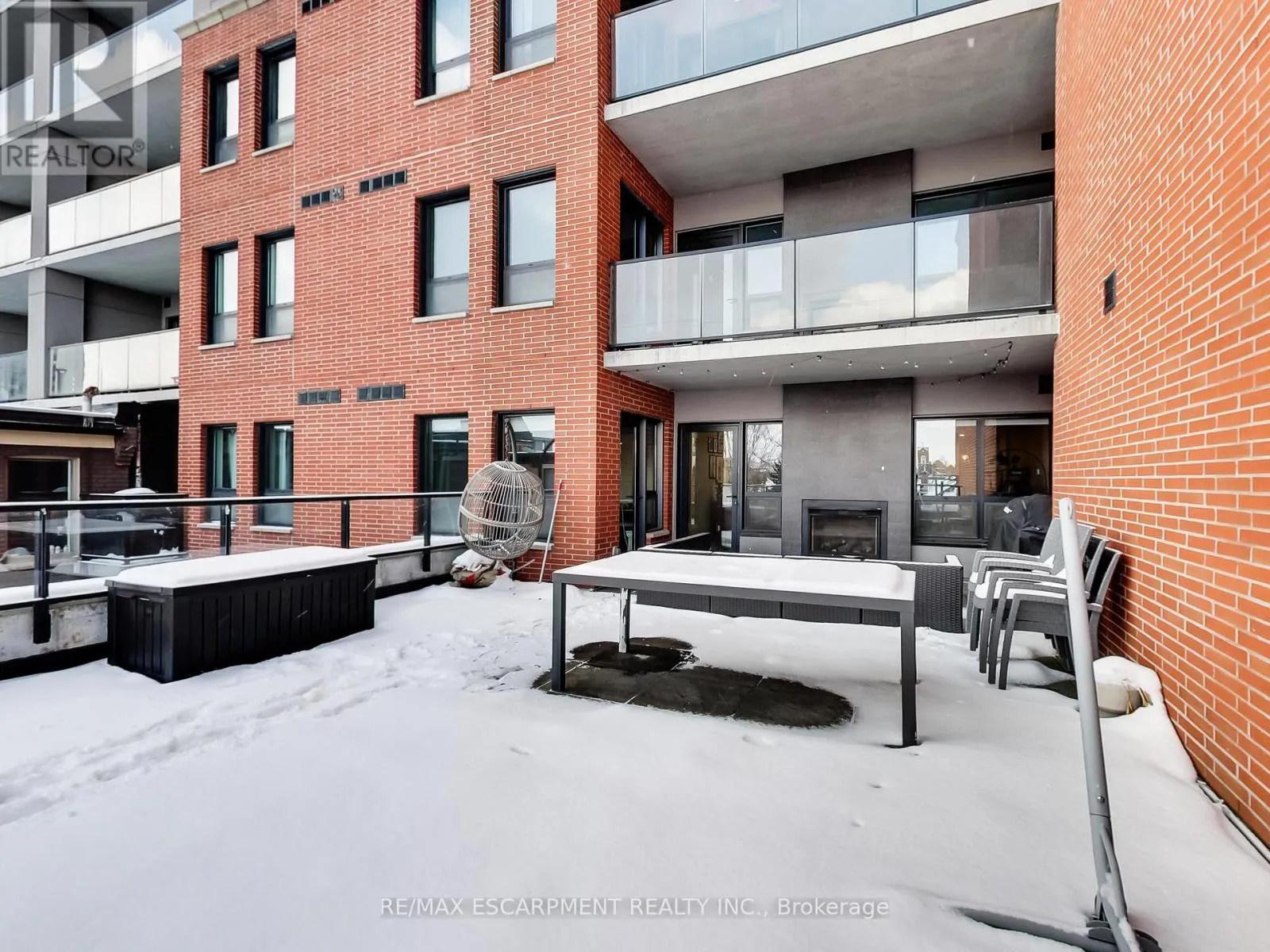 a true second room, ideal for a home office, guest space or studio, allowing this suite to live more like a small two-bedroom. The north-facing exposure provides consistent natural light without excessive heat, making both the interior and terrace comfortable and usable throughout the day. A standout feature of this suite is the dual-sided indoor / outdoor fireplace, creating a seamless connection between the interior living area and the terrace. Enjoy the fireplace from inside during cooler months, or while entertaining and relaxing outdoors – a rare architectural feature that elevates both comfort and lifestyle. The highlight of this home is the oversized terrace, large enough to accommodate full outdoor dining, lounge seating and container gardens. This is not a typical balcony, but a true outdoor room – ideal for entertaining, working from home or unwinding in a private setting. Your pet will love this feature! The unit includes one underground parking space and one locker. Located on vibrant James Street North, steps to cafés, restaurants, galleries, transit and the GO Station, this offering combines generous interior space, exceptional outdoor living, a rare fireplace feature, and income security in one of Hamilton’s most dynamic downtown neighbourhoods. (id:62650)