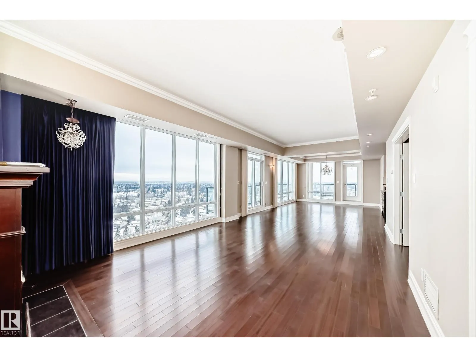 Welcome to this impressive 55+ PENTHOUSE! Over 1,850 sq ft of beautifully designed living space. Featuring 2 spacious bedrooms plus a versatile den, the functional layout is filled with natural light from floor-to-ceiling windows. The stunning kitchen boasts granite countertops, SS appliances, and an abundance of cupboards. Enjoy the expansive living room with a cozy fireplace, perfect for relaxing or